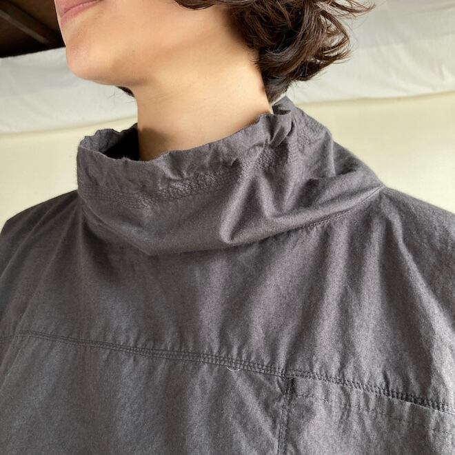 こちらの作品はくしゅくしゅと見える衿の部分がかわいいデザインですし、軽やかな生地で仕立てられているので肌寒い日にさっと羽織れて便利なアイテムかと思います。こういうカタチは店頭でも「着るだけでかわいい雰囲気になる」と評判が高いです。ぜひ挑戦してみてください。