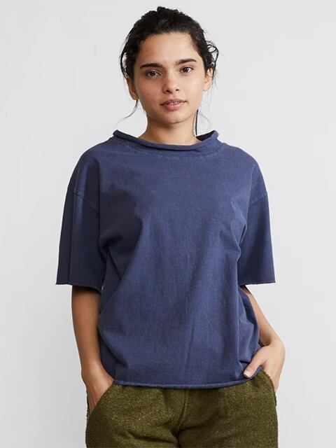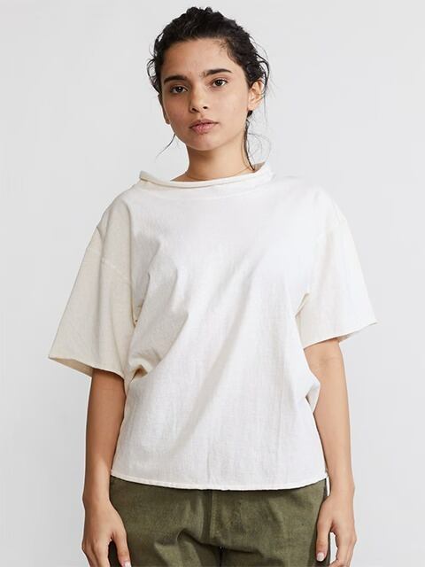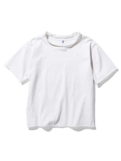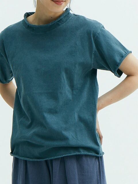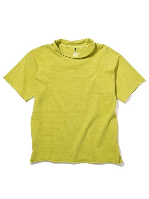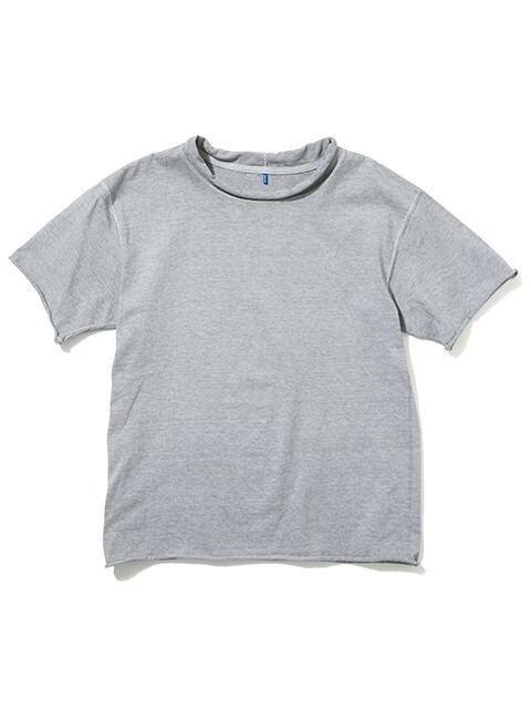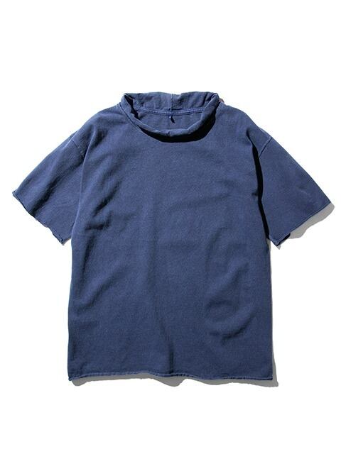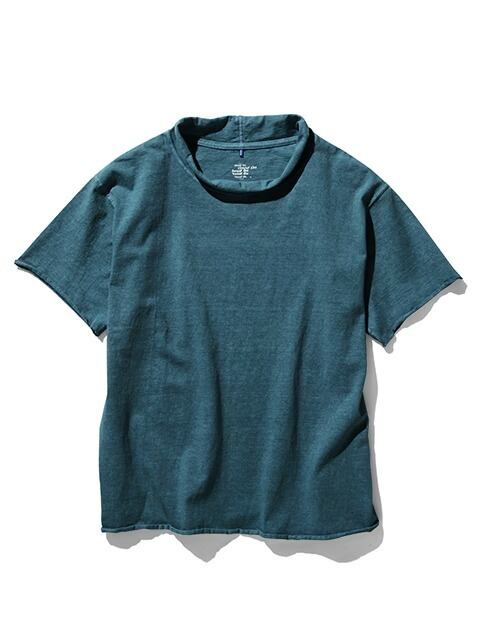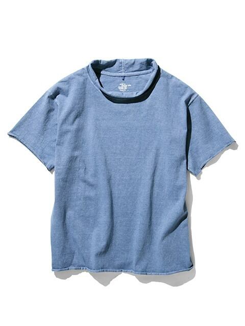 適度にゆとりを持たせたシルエットに、首、袖、裾はカットオフ&ロックステッチ仕様でナチュラルにクルクルと丸まったラフなデザインに仕上げた、ほど良く肩の力の抜けたリラックス感のある表情が何とも言えない一着です。
