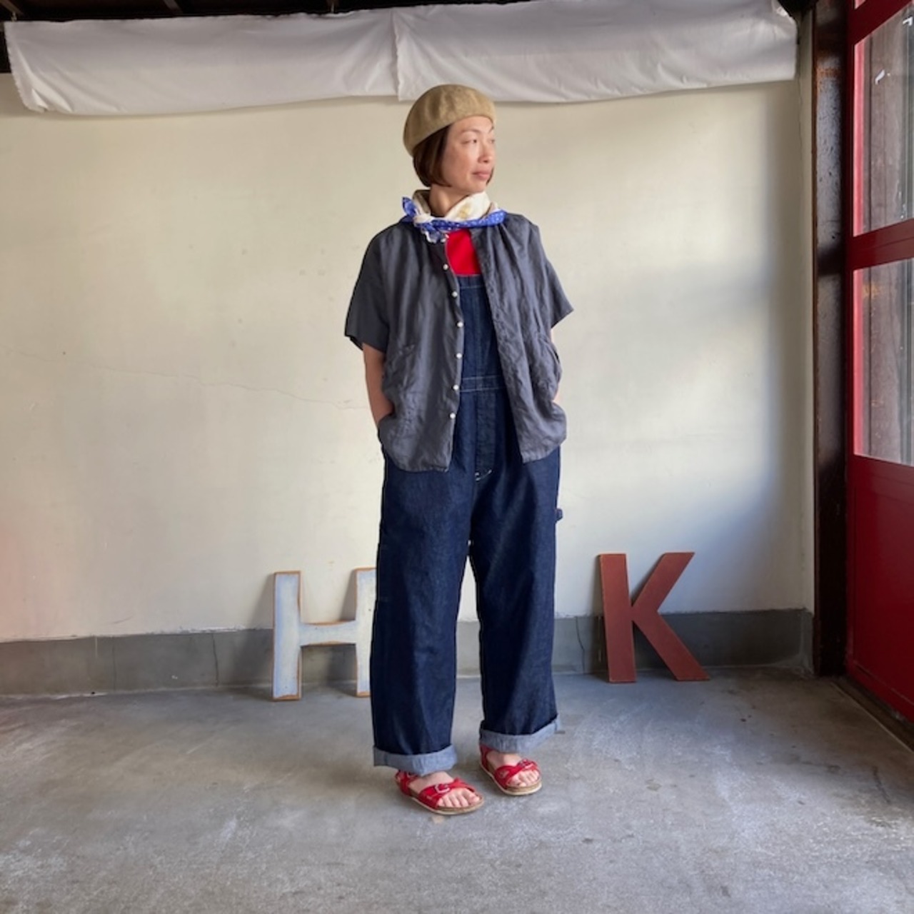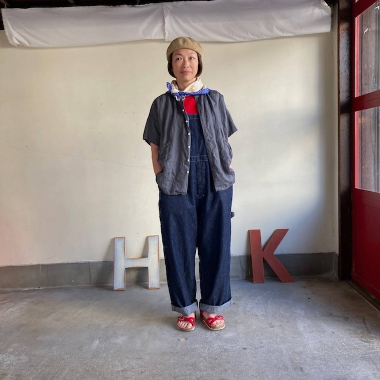 快晴堂のサロペットは人気があり、当店でも積極的にセレクトしていますが、こちらのカタチはめずらしいのかな!と思い、新鮮な気持ちでセレクトしました。お客様に見てもらったり、試着していただくのが楽しみな作品です。また、男性でも着られそうだなと思い、自分でも試着してみましたが、ゆとりがありましたので、自分よりもがっちりした体系の方にもおすすめできるのかなと予想しています。※男性、167センチ、60キロです。
