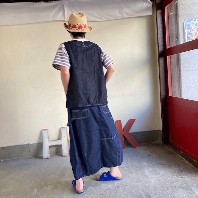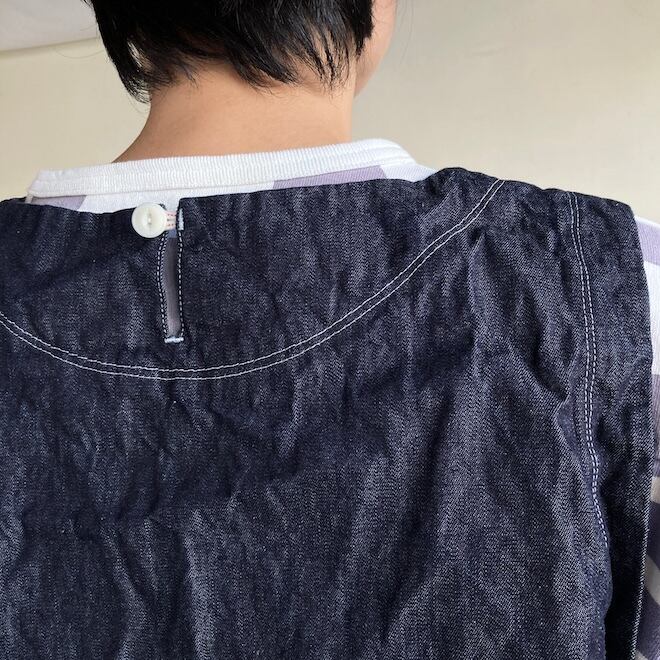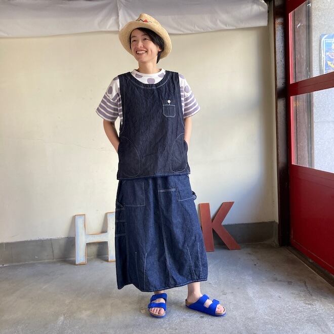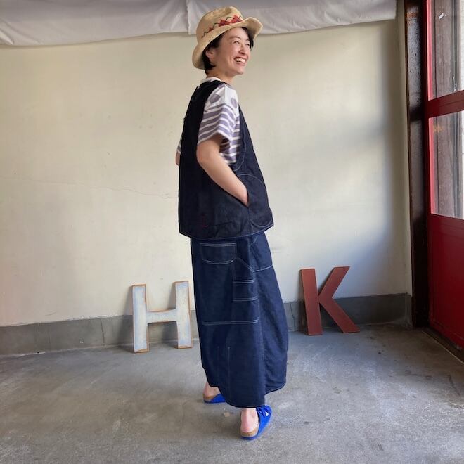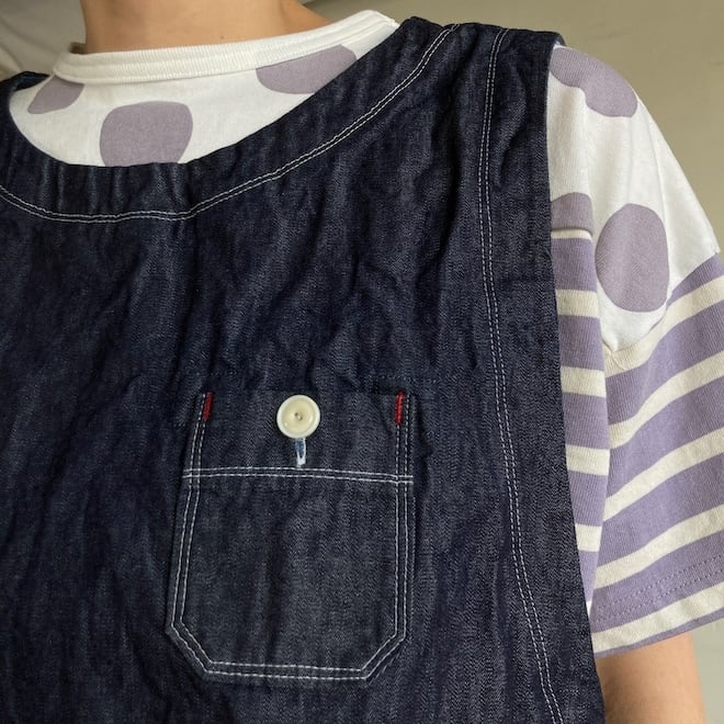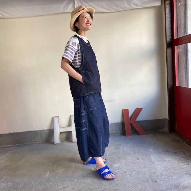 ふわりベスト自体が合わせやすく、汎用性が高い作品ですが、デニム生地ならそれはもう!かわいい上に使いやすいでしょう!と思いセレクトいたしました。