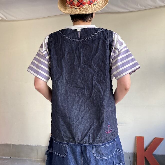 快晴堂 レディース ベスト ふわりベスト Girl'sリラクシンWorkデニム/ホワイト 52P19 サイズF 全1色 インディゴ・デニム