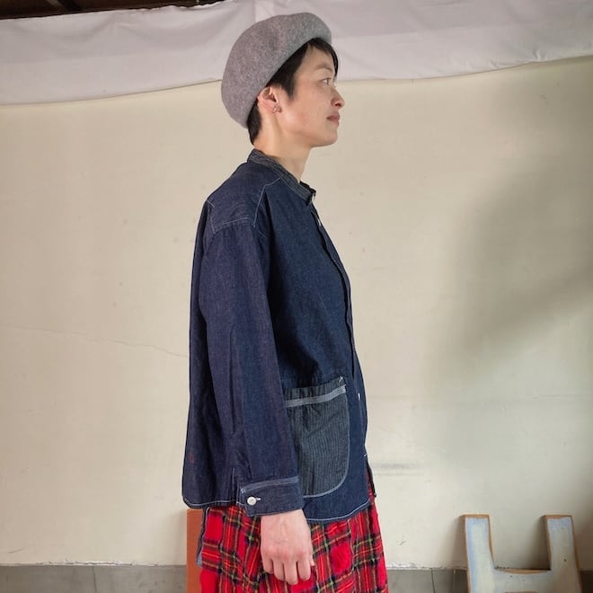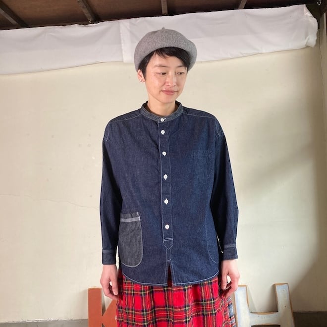 快晴堂 レディース メンズ シャツ スタンド・プルオーバーシャツ HAYATEデュアルシーズンデニム 53S51 サイズ3+,5+ 全1色