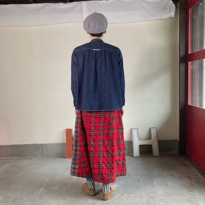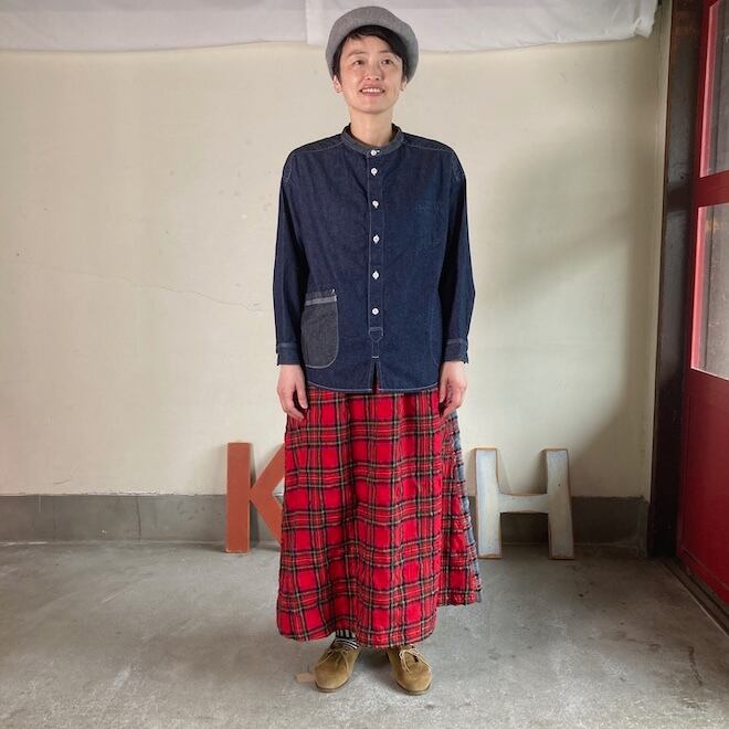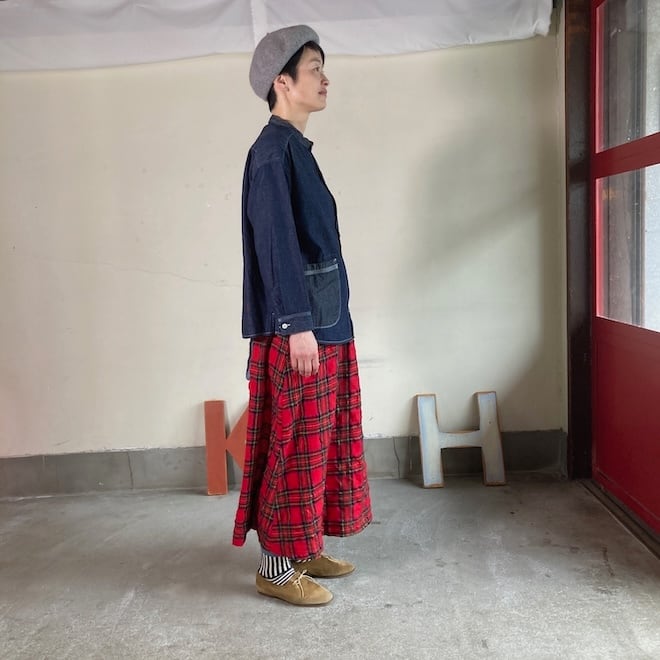 温暖化や暖房設備の発達により、昔ほど寒くないのでインナーやレギンス、タイツなど工夫していただければシーズンレスに着ていただけます。とても汎用性のあるデニムです。