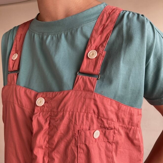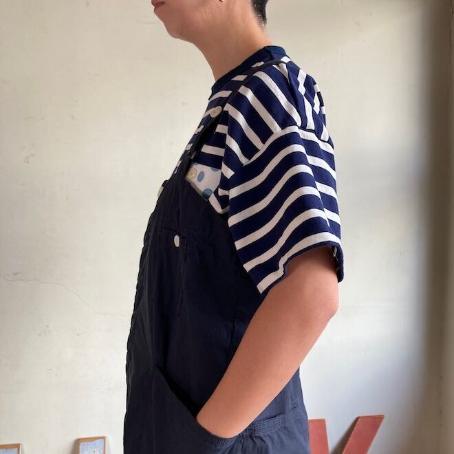 当店では羽織ものとして実績があるロングシャツのOPとカタチがかわいいこちらのフィッシャーマンズサロペットをセレクトいたしました。ライトオンスデニムシリーズのフィッシャーマンズサロペットと比べていただけたら良いかなと思います。