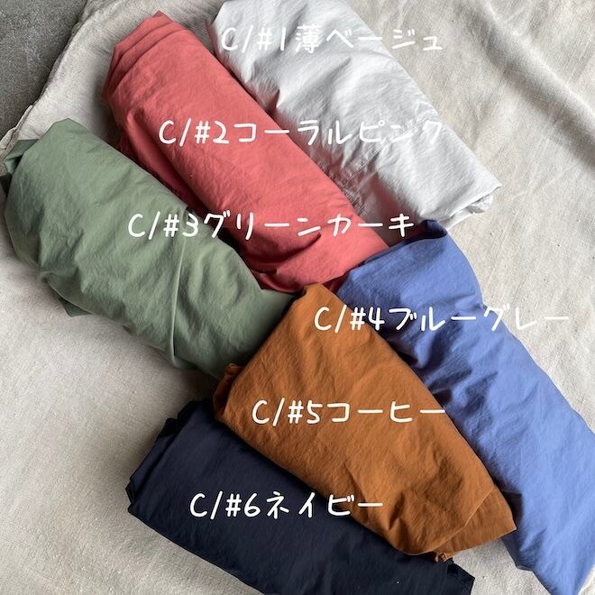 快晴堂ではコットン100%のタイプライターをよく使いますが、この生地は縦糸にコットン、横糸にナイロンを使用して高密度に織り上げたタイプライター生地になります。独特のタッチを出すために加工がなされ、適度なハリコシ感はありつつ柔らかさと滑らかさもあります。ナイロンが入ることでほんの少しだけしっかりとしているため、コーディネートの工夫で長い季節に着ていただけます。