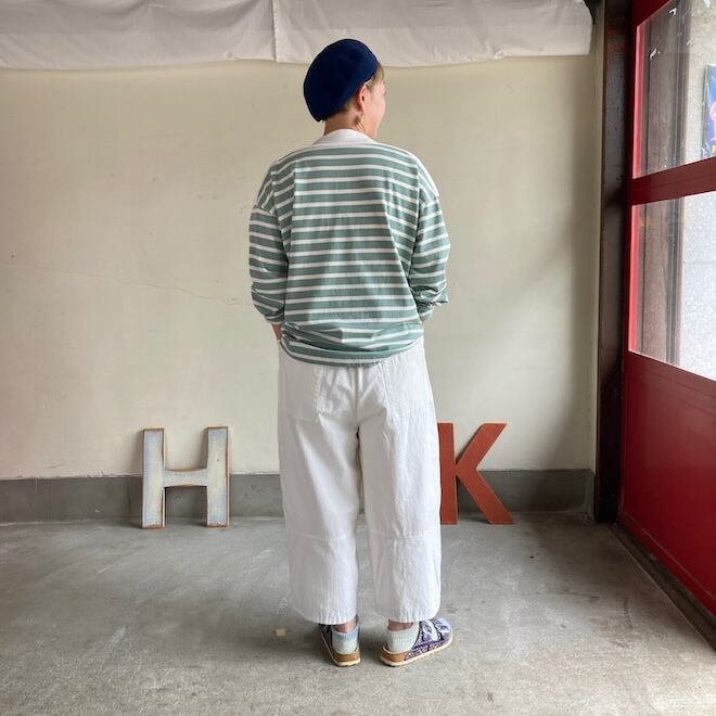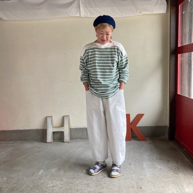 全体にゆったりとした着こなしが好きな方におすすめではありますが、ゆったりしてるのにすっきりと着こなせる、そういった不思議な魅力があるブランドです。ぜひ作品を通じてその魅力を共有していただきたいです。