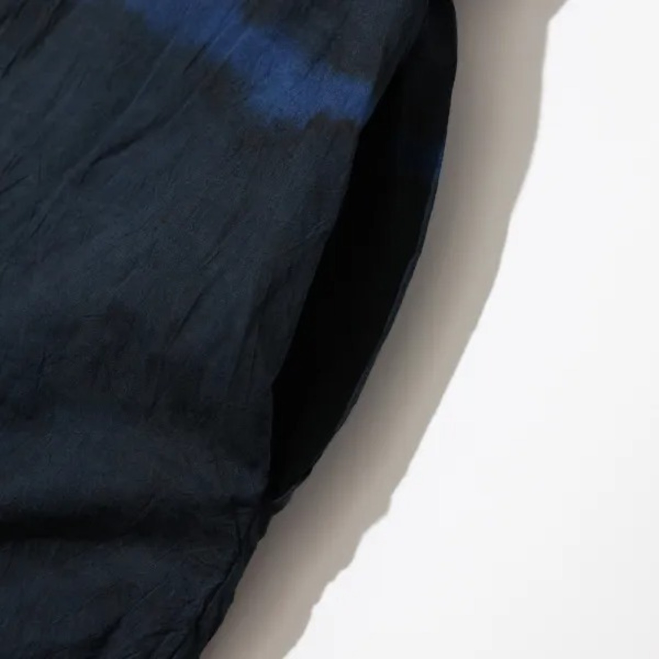 当店では2019年からセレクトしており、唯一無二の染色方法によって表現された個性的な特徴に魅了されたファンから根強い人気を得ています。奄美大島の大自然の中で培われた天然染料である泥染め、藍染めを手染めで仕上げていく染色の技術はもちろんのこと、落ち着いた印象でありつつ、トレンド性もバランスよく取り入れた作風のファッション性の高さも評価されています。普段の着こなしに取り入れやすいカジュアルアイテムにそれらが落とし込まれているのも魅力の一つです。