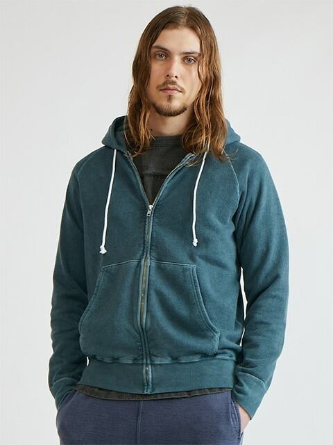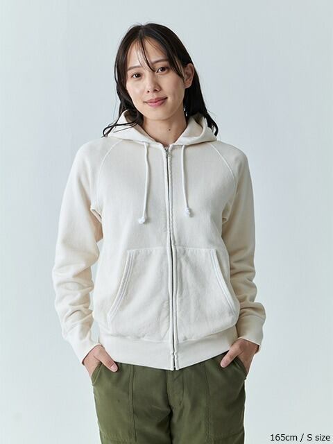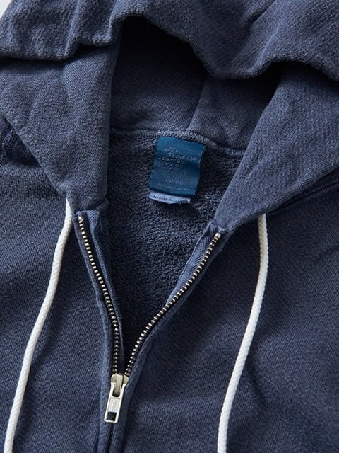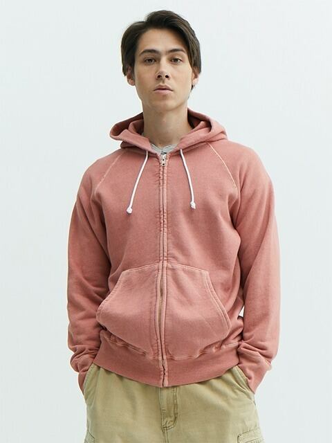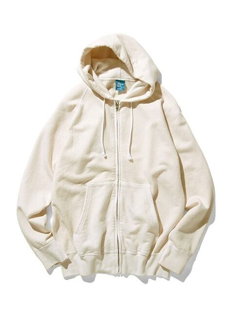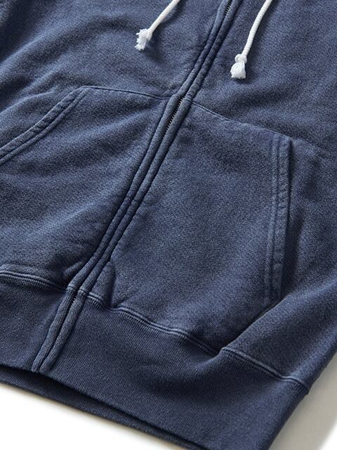 インナー/アウター兼用で季節を越えて着回しやすい9オンスフレンチテリースウェットを使用したフルジップフ―ディー。