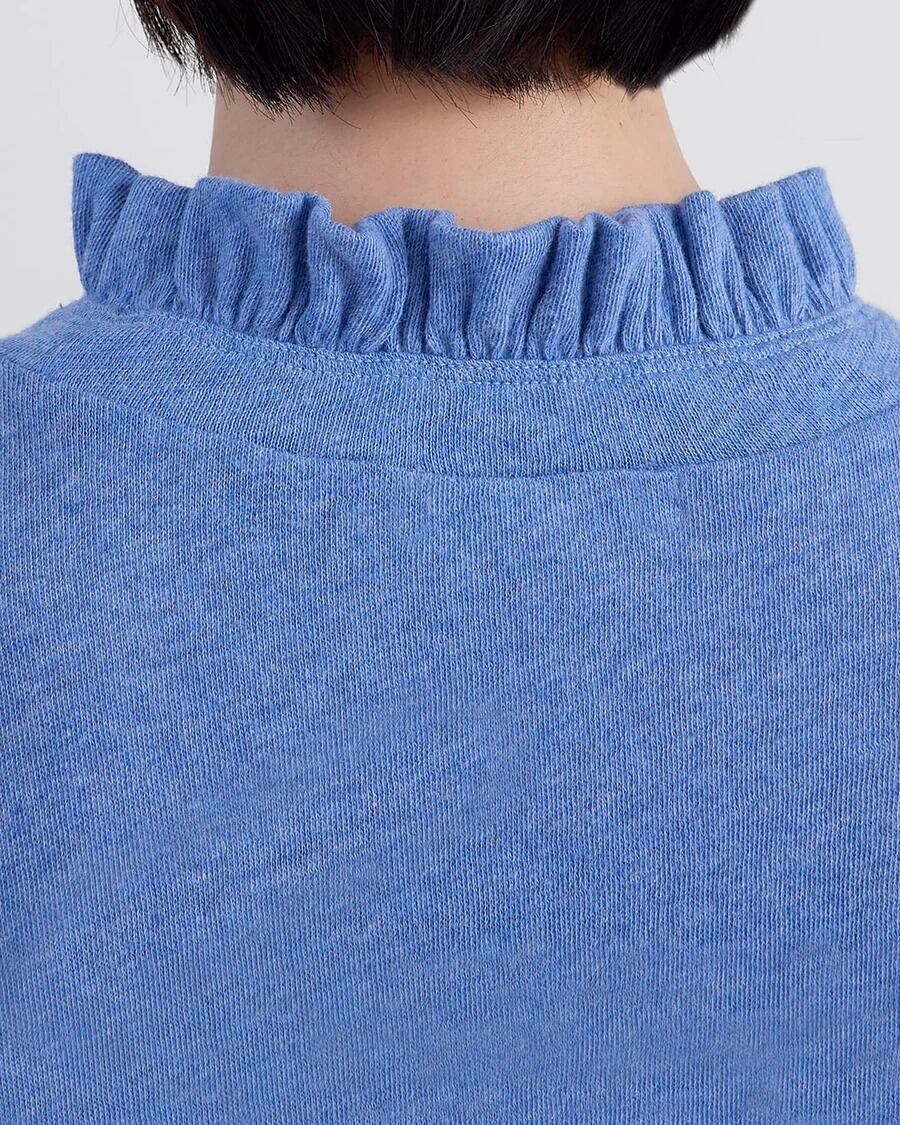 □ 前年人気だったガーゼのカットソーのリピート □ 柔らかいガーゼ天竺を使用 □ 伸縮性があり柔らかく身体のラインにフィット □ フリルの襟は重ね着の際もポイント □ 袖は長めのリブ仕様で折り返しての着用も可能 □ BLUE・OFFが新色で登場