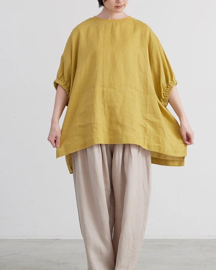 HEAVENLY ヘブンリー レディース シャツ Linen Gather Sleeve Ribneck Pullover / リネン ギャザー スリーブ リブネック プルオーバー - 2547022 - 全4色 レディースフリー