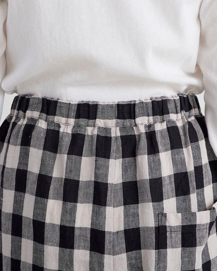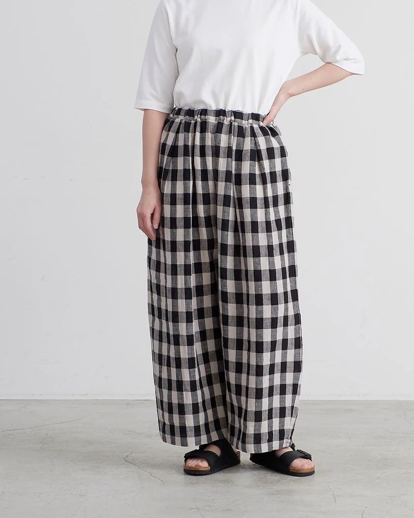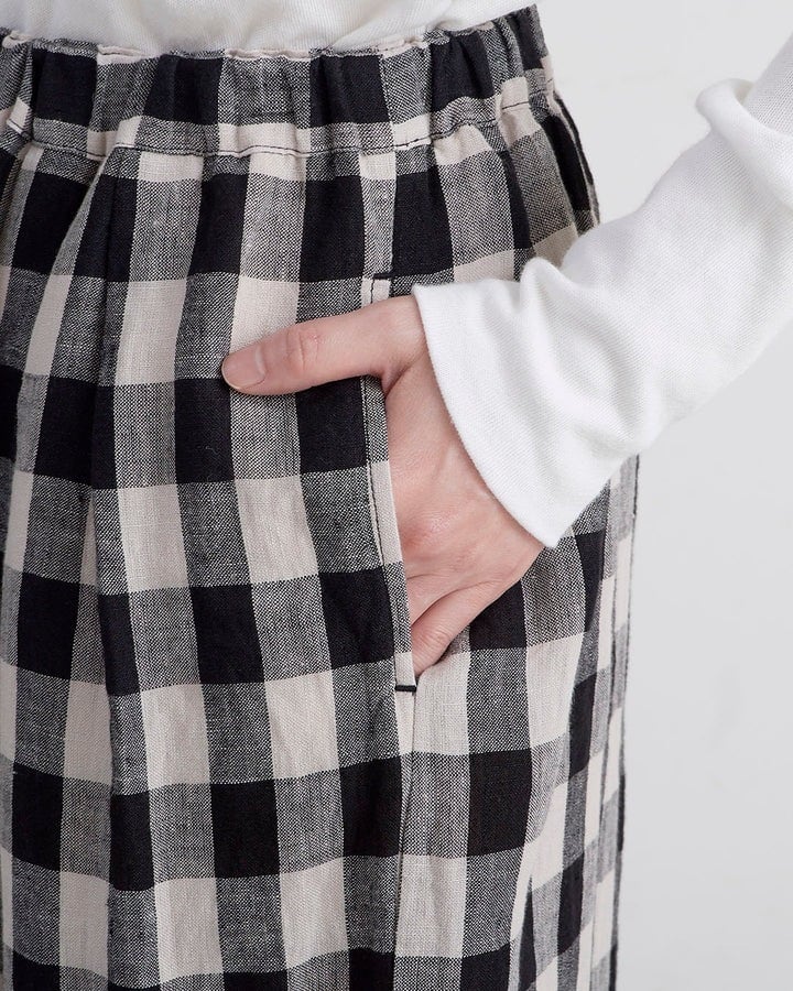 □ 程よい厚みのリネン100%の先染め生地 □ 前のウエストにタック入りですっきりしたシルエット □ チュニックやワンピースのレイヤードアイテムとしても重宝 □ ワイドシルエットでストレスフリーで着用可能