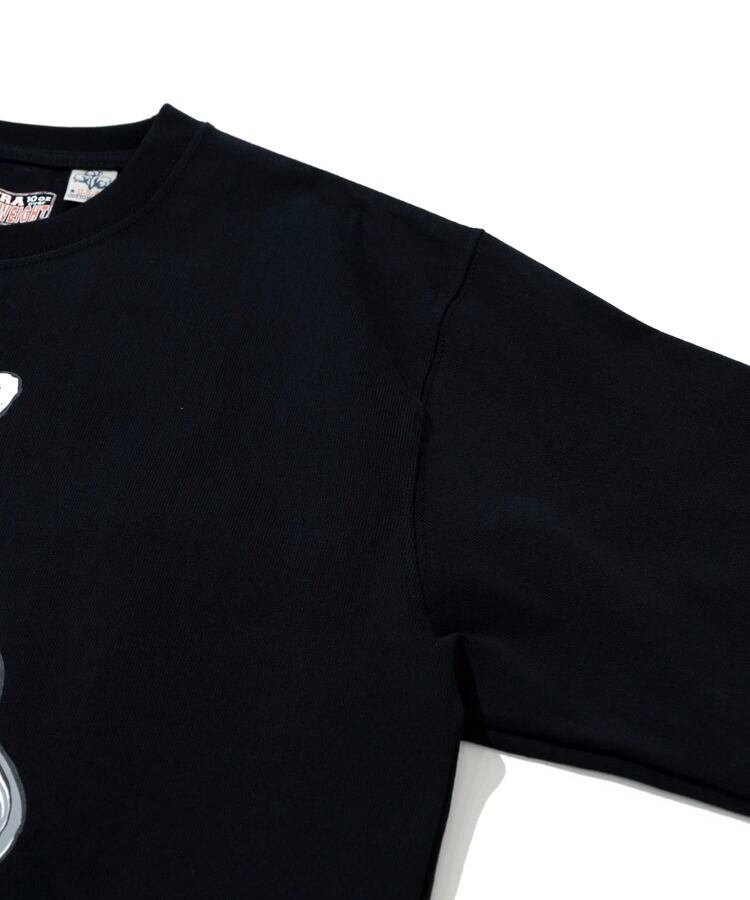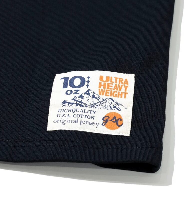 USAコットン16番手単糸2本を撚り合わせ、"双糸"で編んだ10oz以上の超ヘビーウェイトなオリジナル生地を使用。双糸で編み上げる事ではっきりと糸目が見え、キレイめな生地の見栄えに。USAコットンらしいシャリ感もあり通常のTシャツ生地よりも2.5~3倍の強度がある丈夫な生地になっています。Tシャツとスウェットの中間くらいのイメージで幅広い季節に対応します。