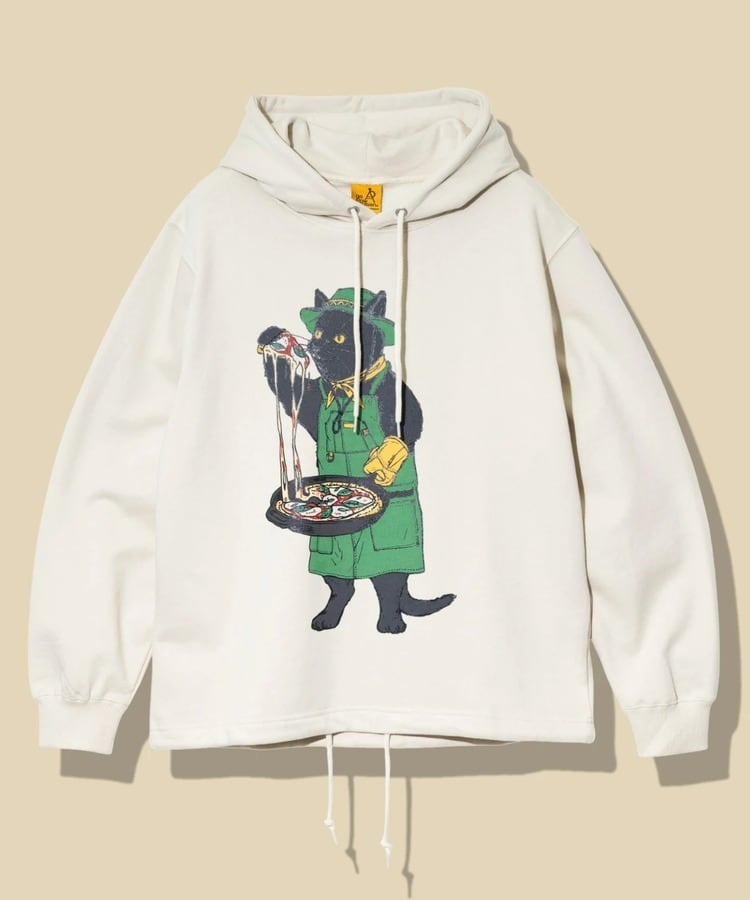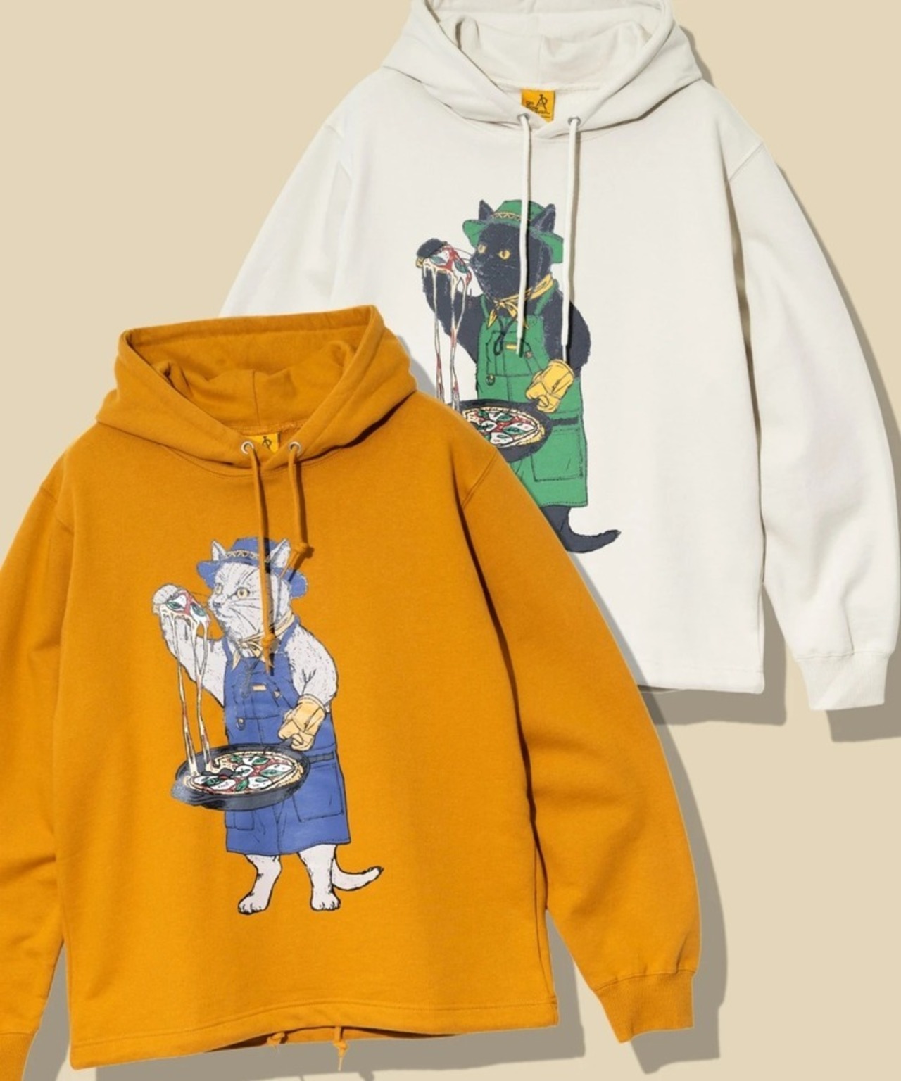 go slow caravan ゴースローキャラバン メンズ パーカー 空紡糸裏毛 スキレットピザ猫 ヘムスピンドルフーディー (MENS) 352607 全2色 メンズM-XL | 古民家をリノベーションしたセレクトショップ Gama