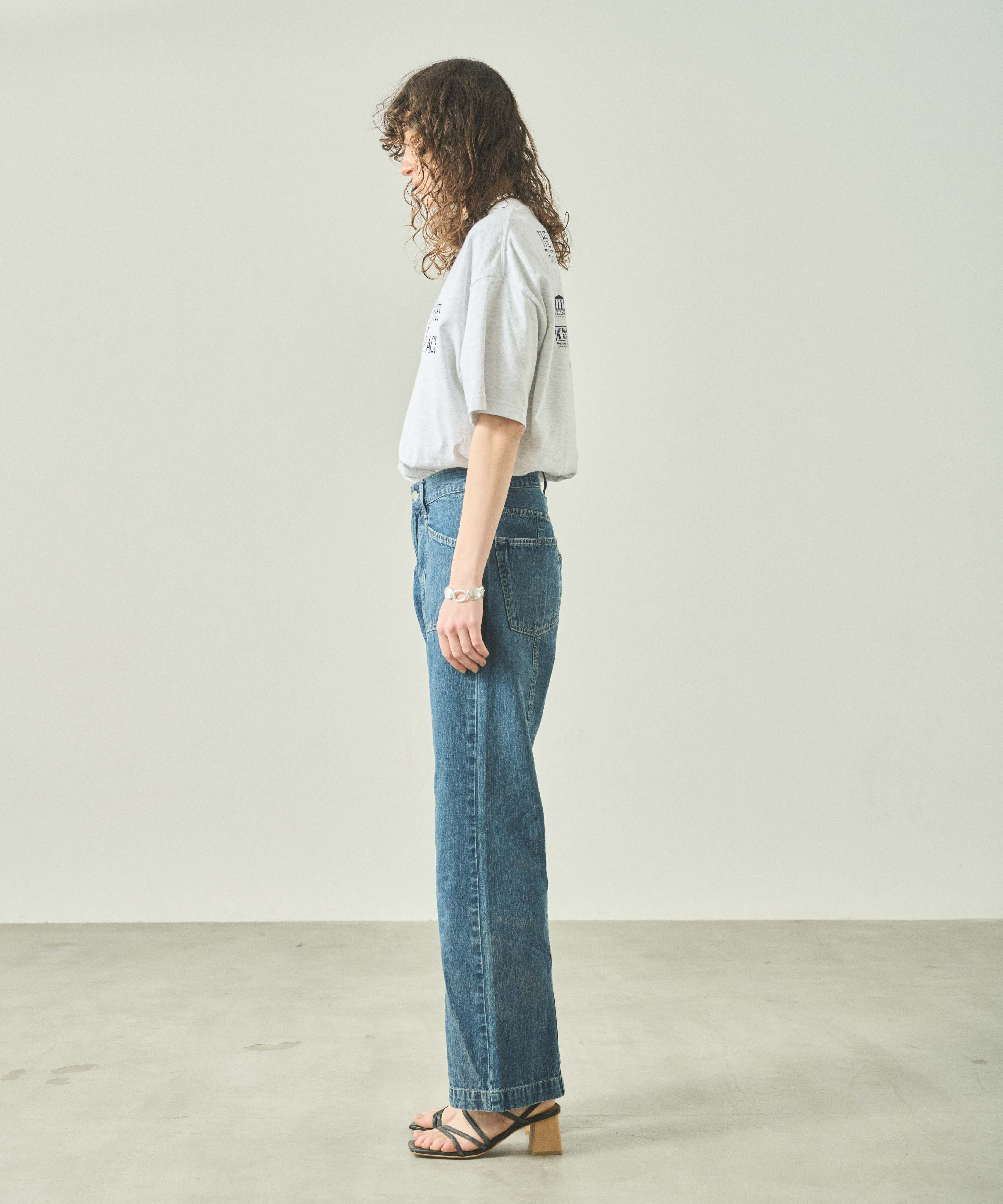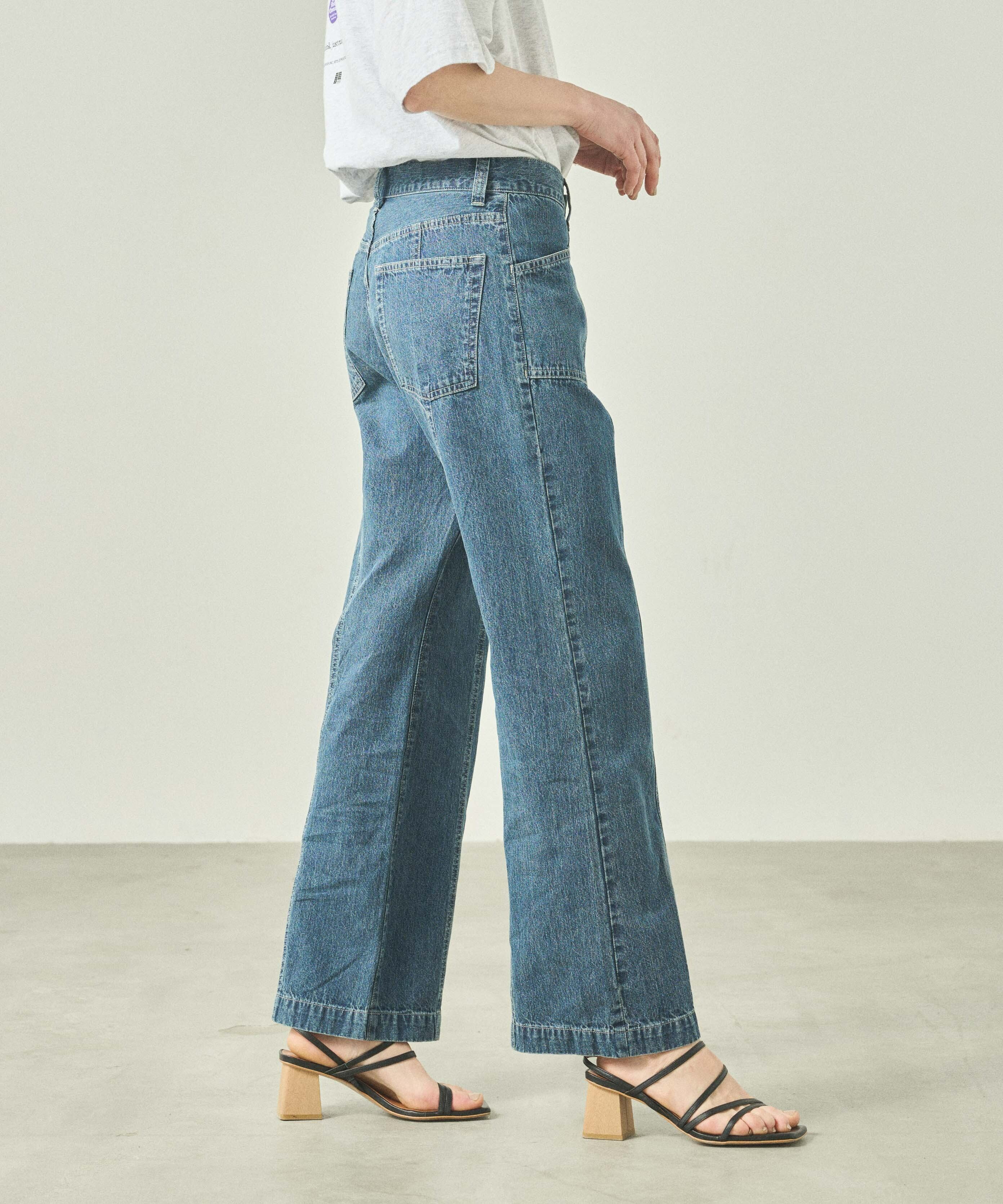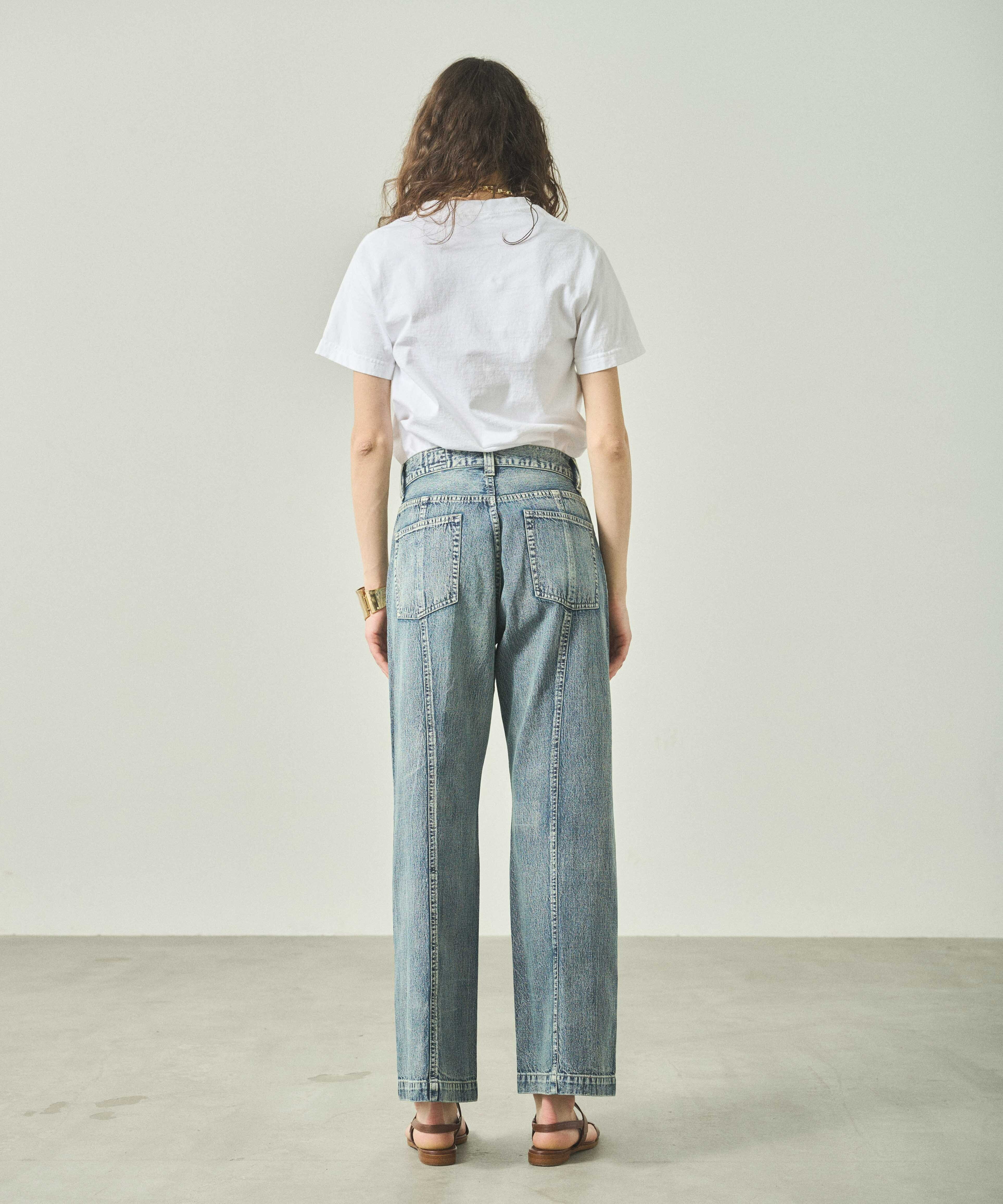 センターシーム切り替えが特徴的なデニムパンツです。