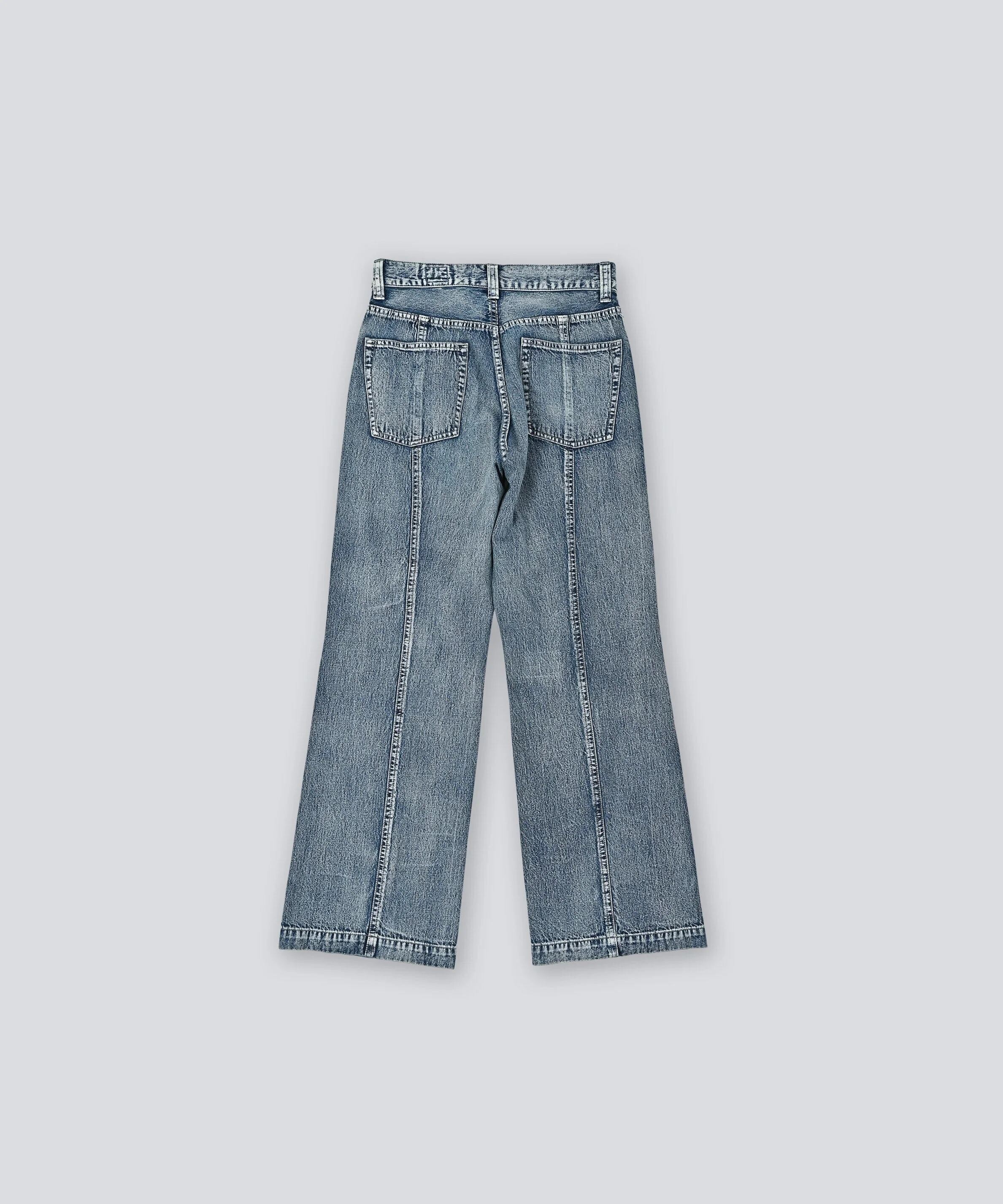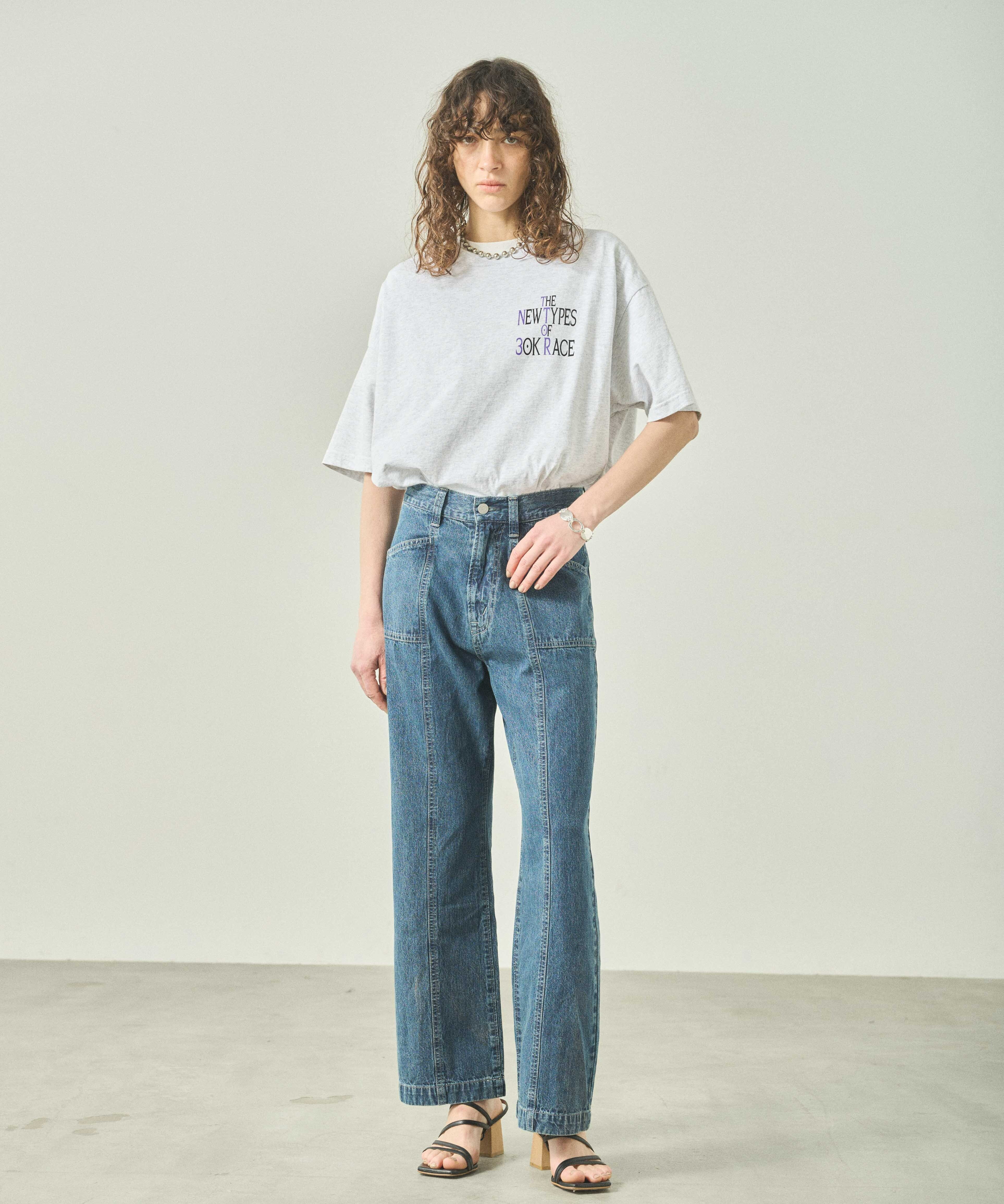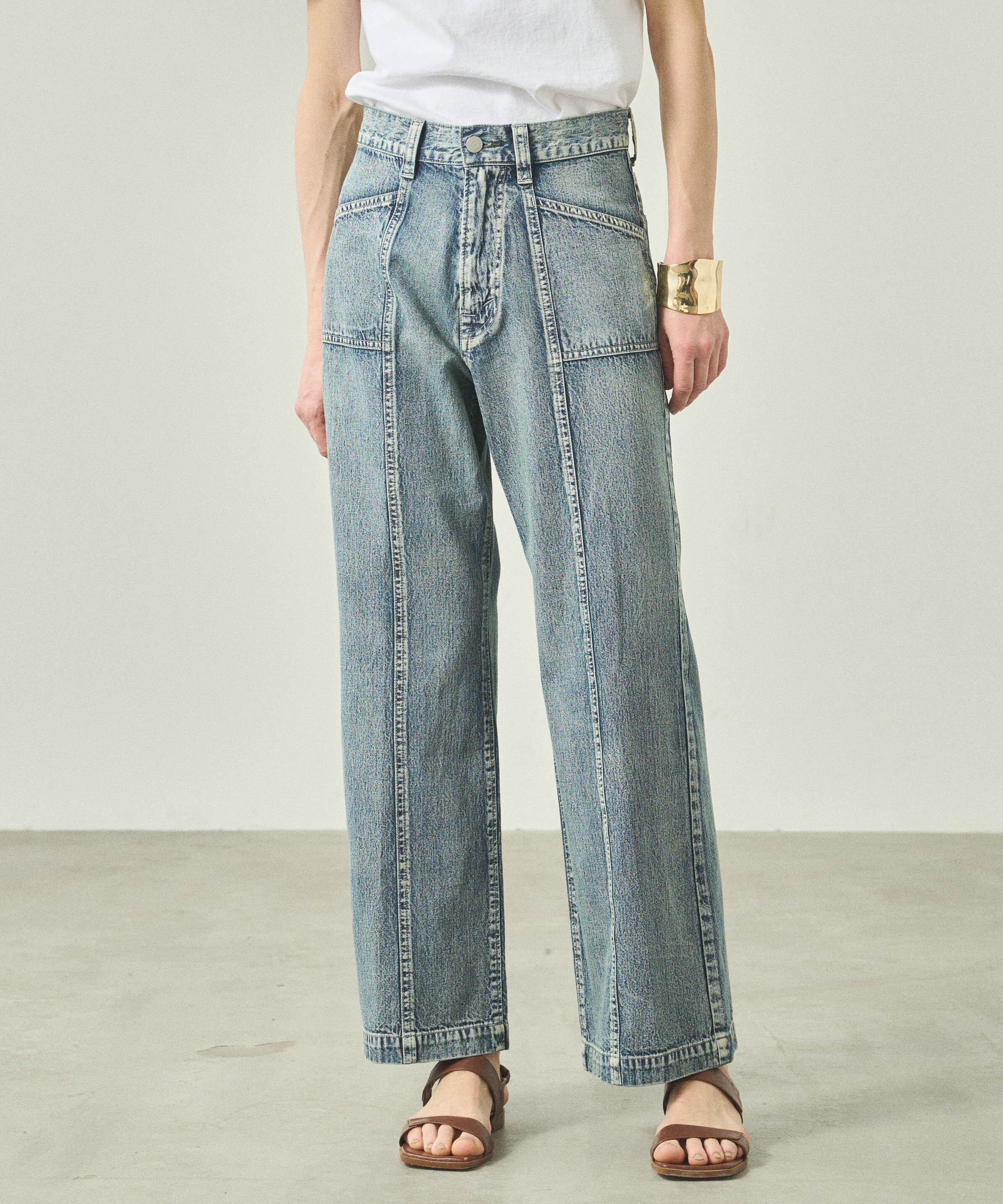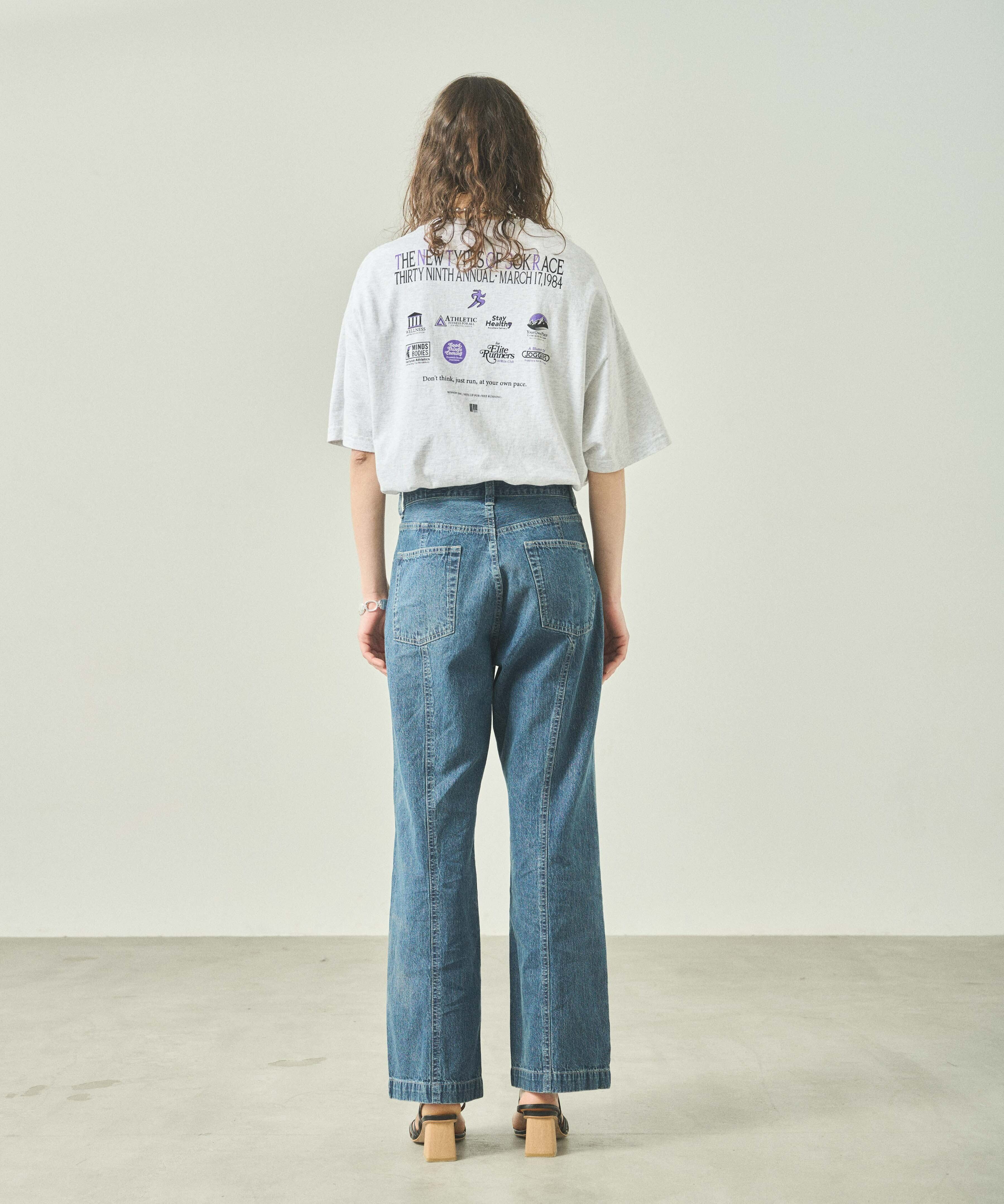 センターシーム切り替えが特徴的なデニムパンツです。