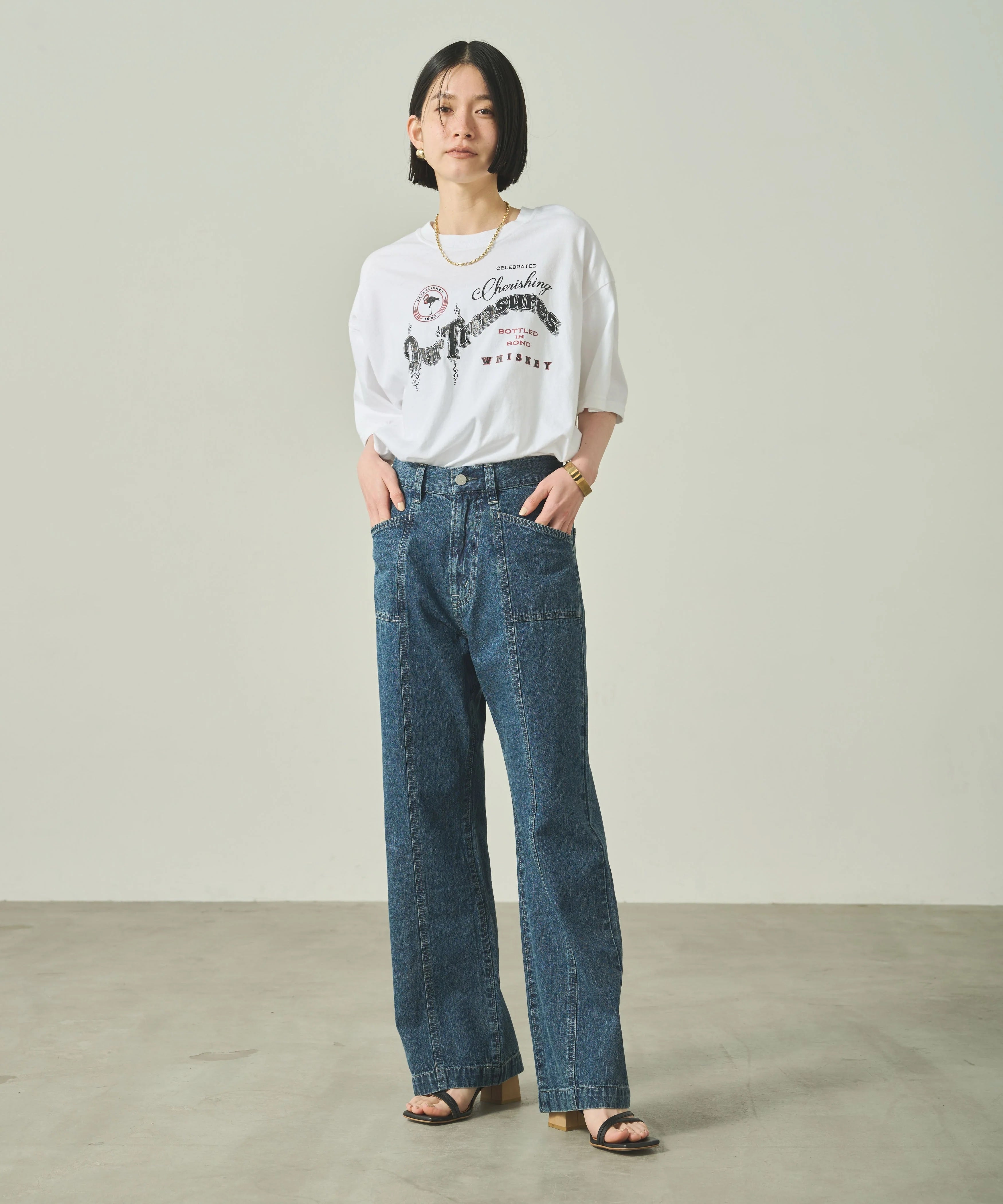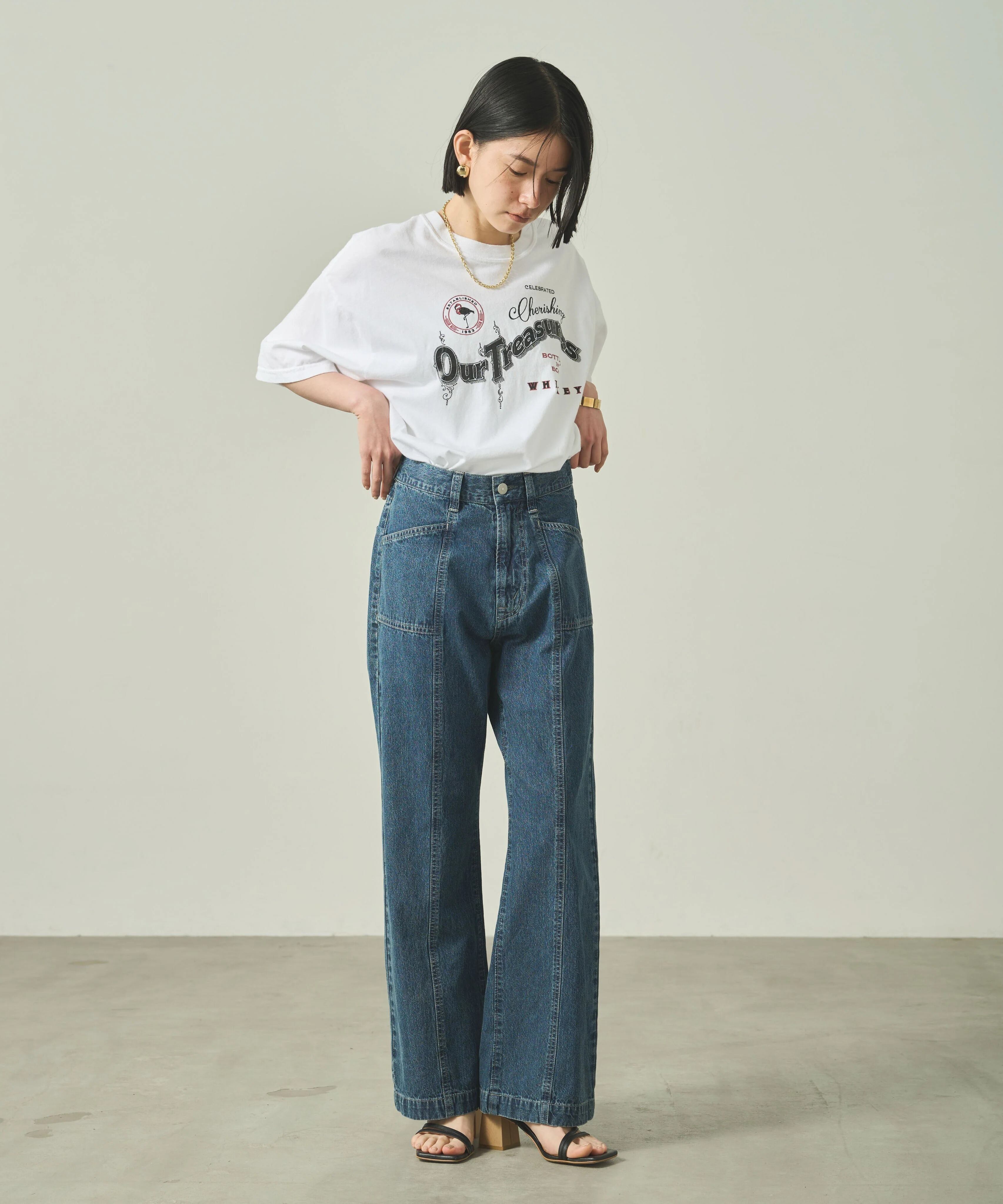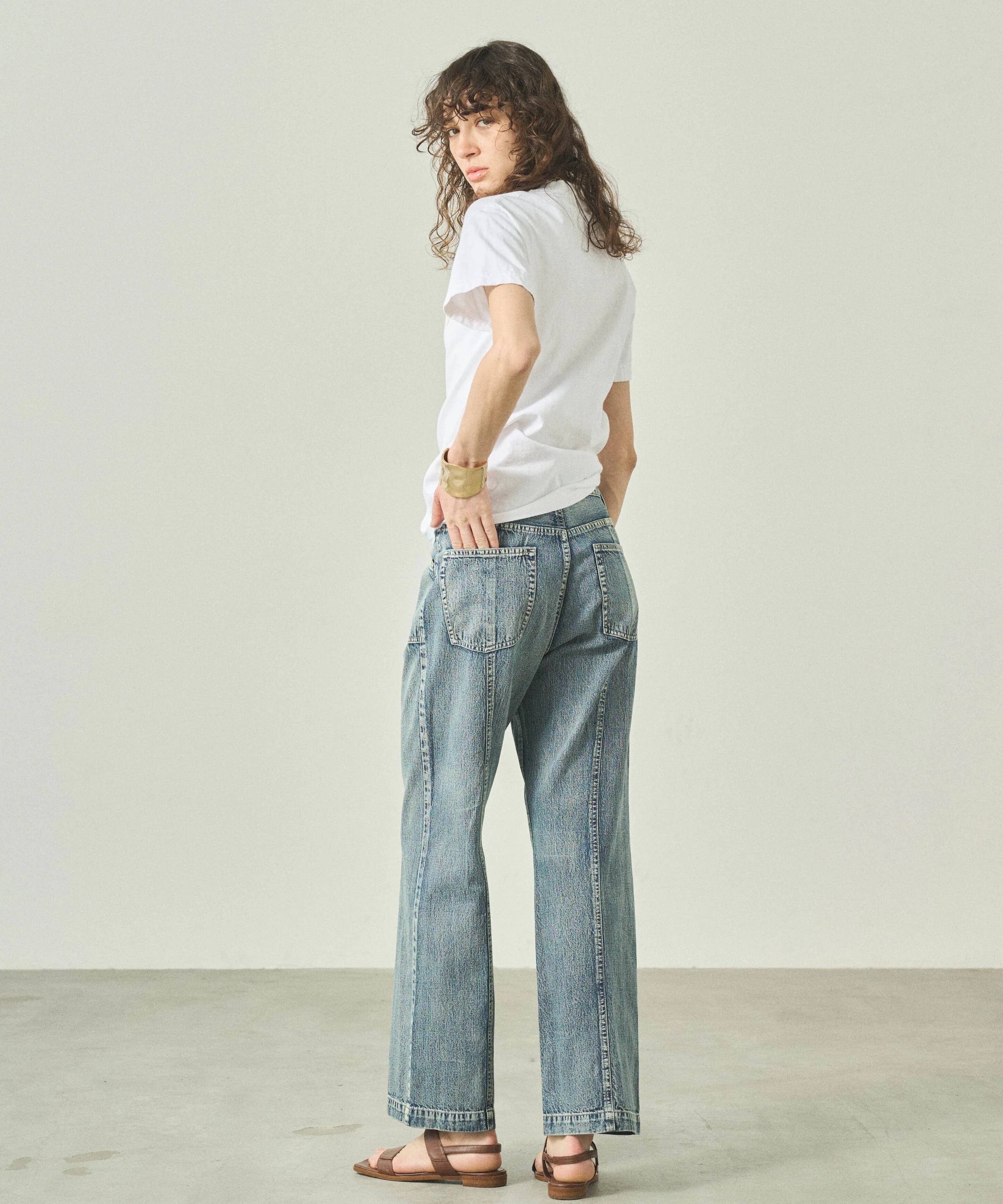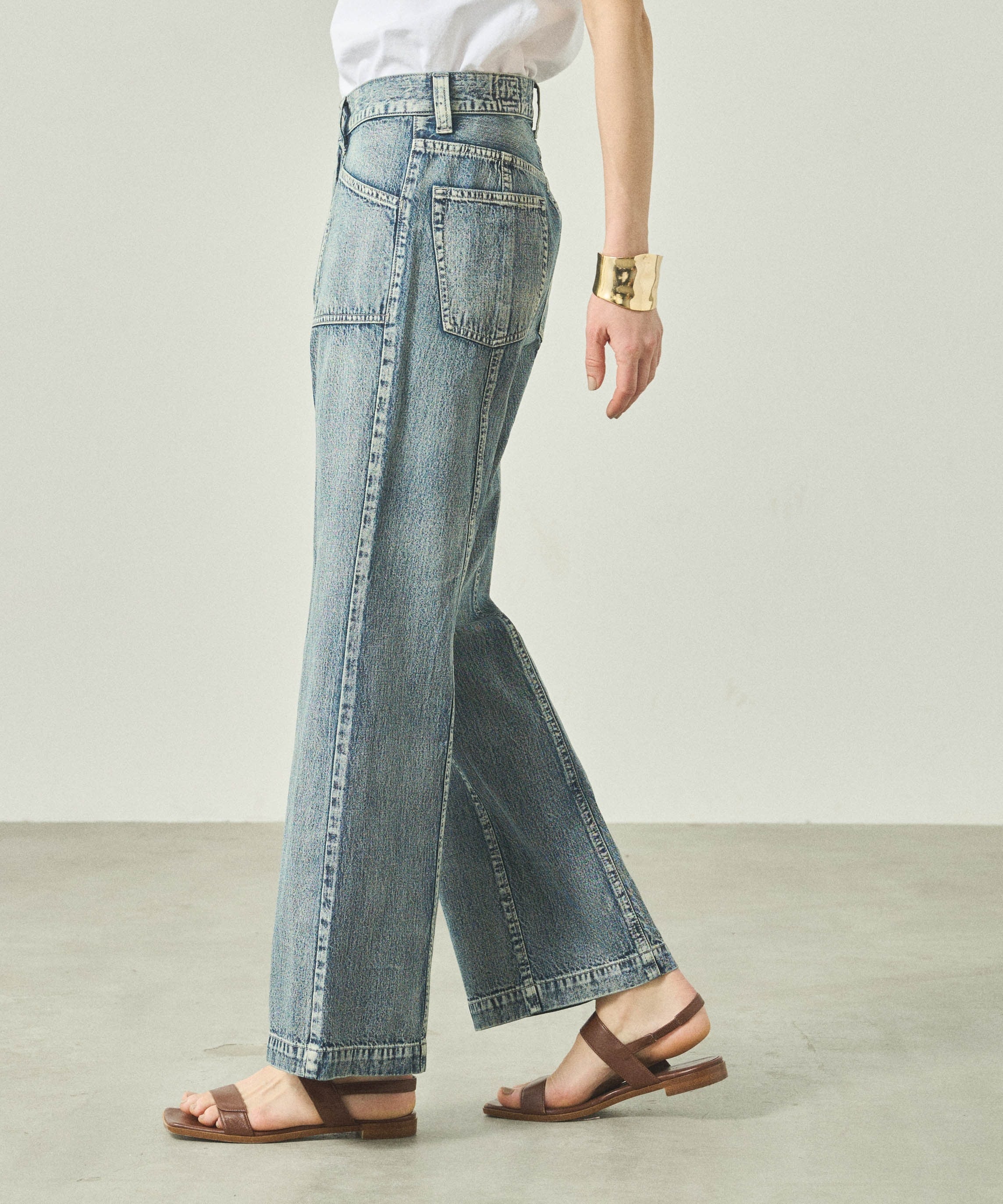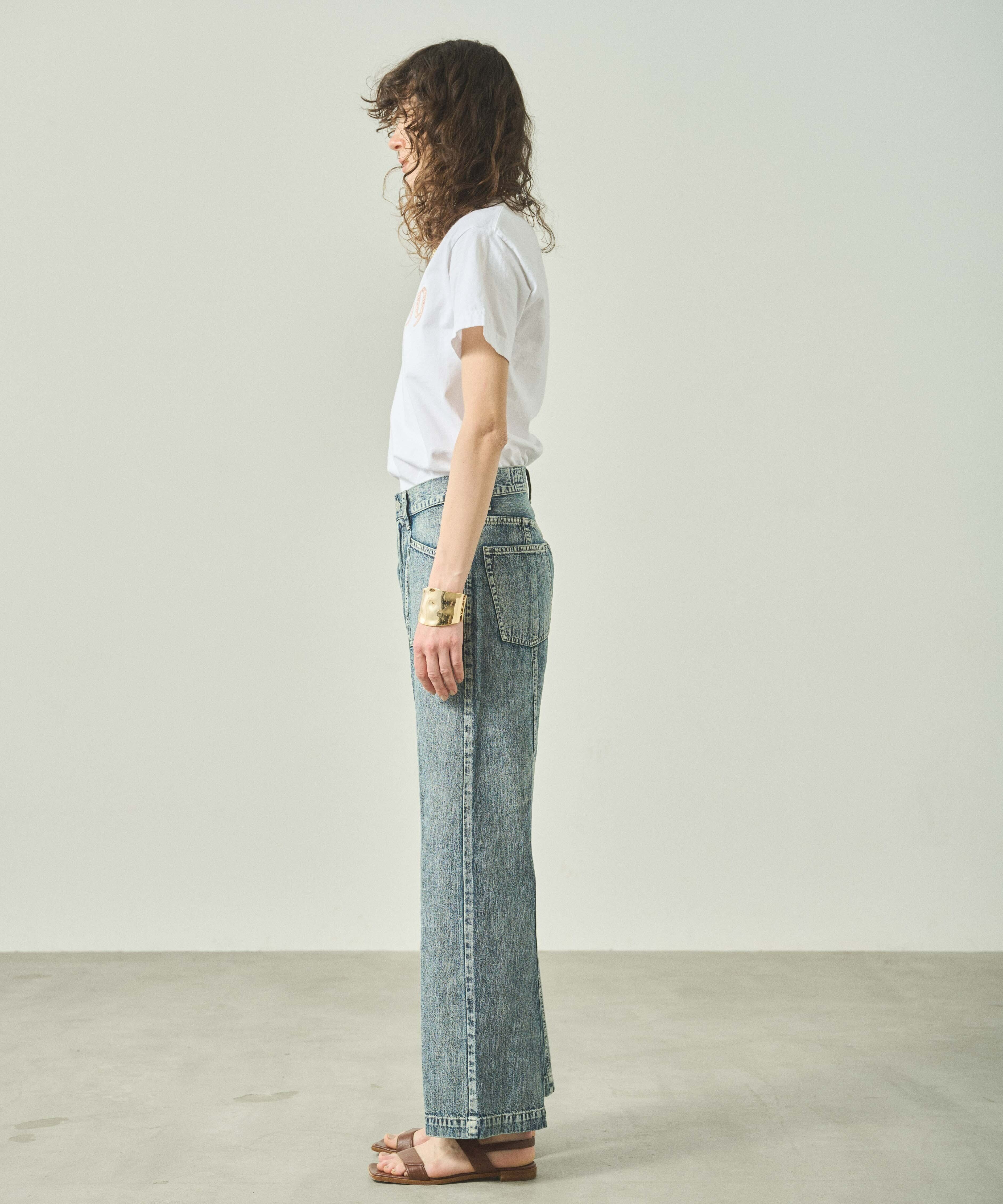 ヒップから太ももにかけてゆとりをもたせ、リラックス感のあるソフトフレアシルエットに仕上げました。