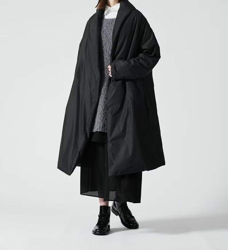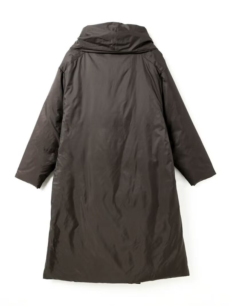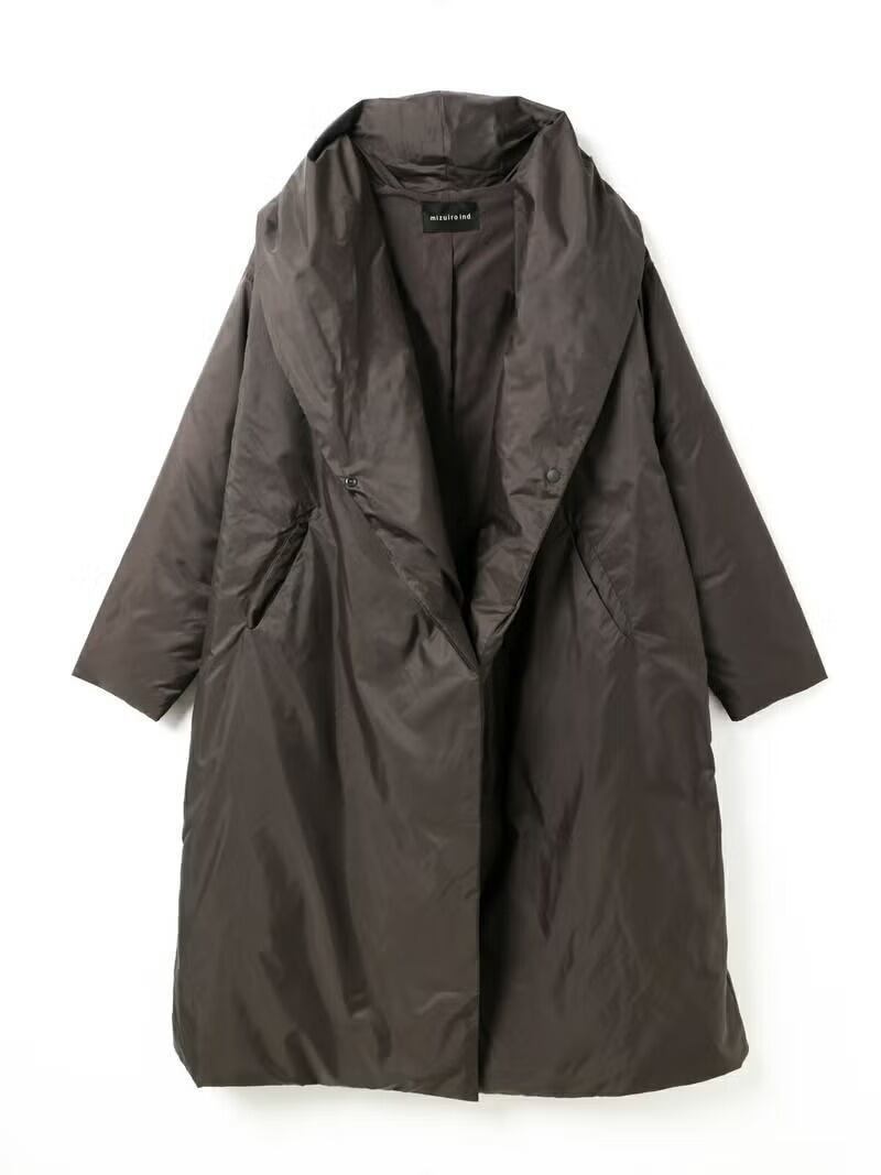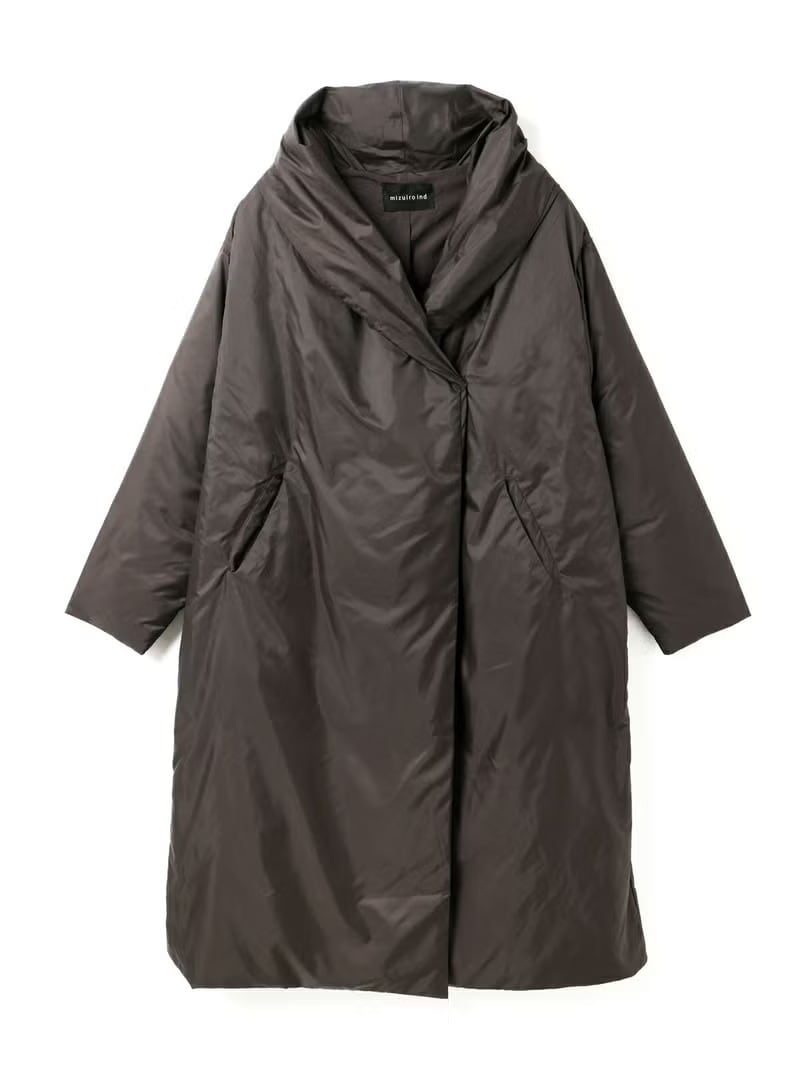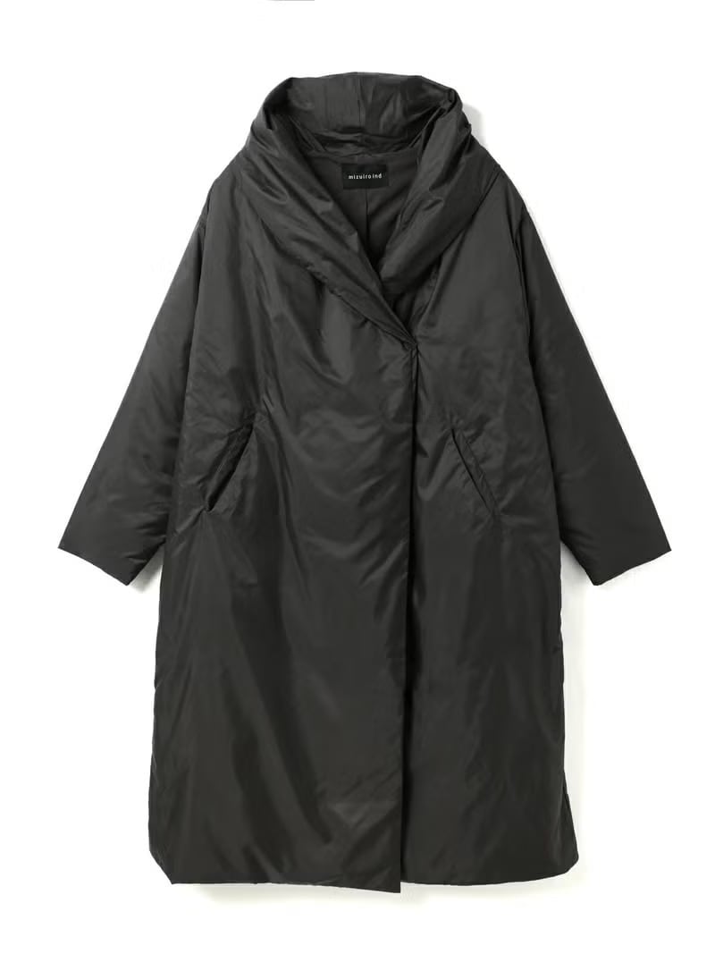 mizuiro indの定番となった人気のドレープライトダウンコートがアップグレードして再登場。ポケットがフロント仕様からサイドタイプに変わり、着膨れ感なくすっきり着用していただけるシルエットに仕上げました。マットなウォーム感のある光沢とタッチ、軽さと暖かさを兼ね備えたシックな雰囲気が印象的で、色々なコーディネートによく合う1枚。スナップボタンなので悴んだ指先でも留めやすい仕様になっています。マフラー無しでも首元を暖かく覆ってくれるかっこいいデザインが特徴。寒い冬の季節に暖かく身を包んでくれるmizuiro indおすすめの1枚です。今季はシックなチャコールグレーとブラックの2色展開です。