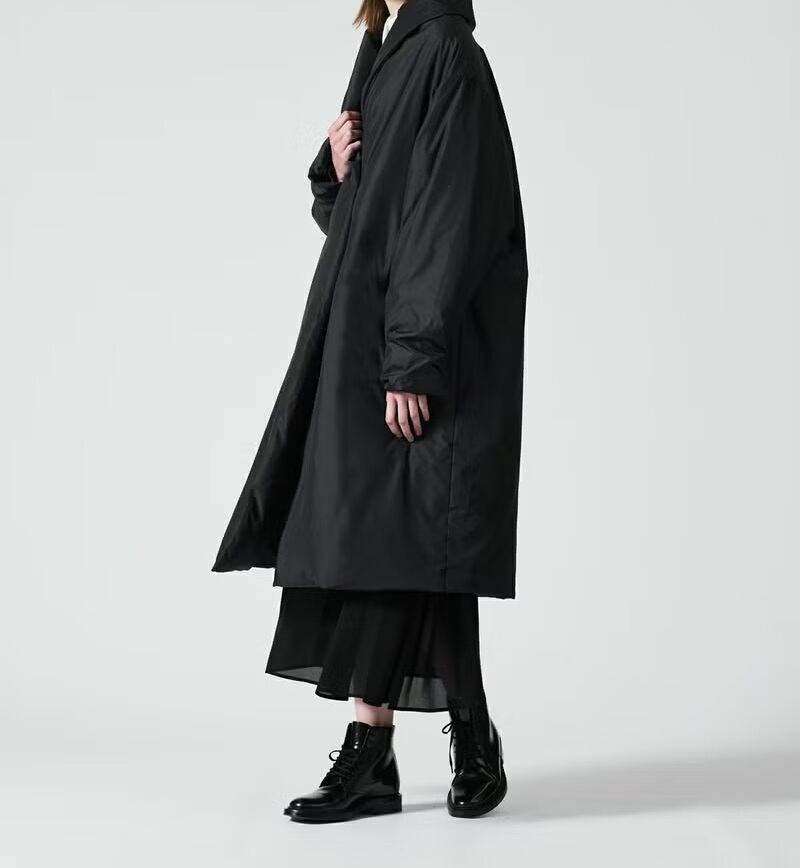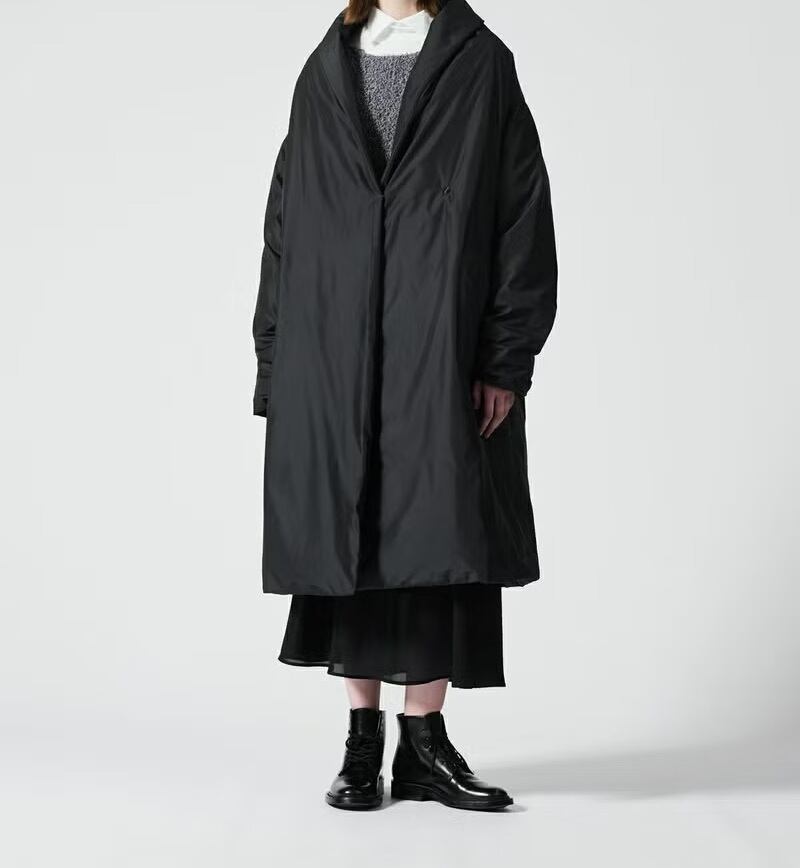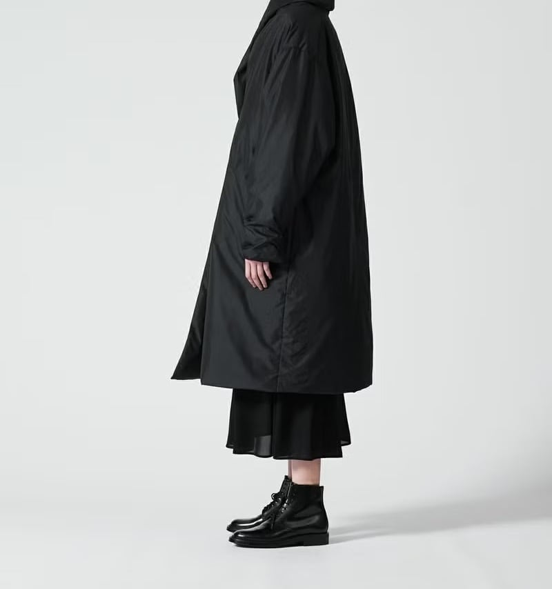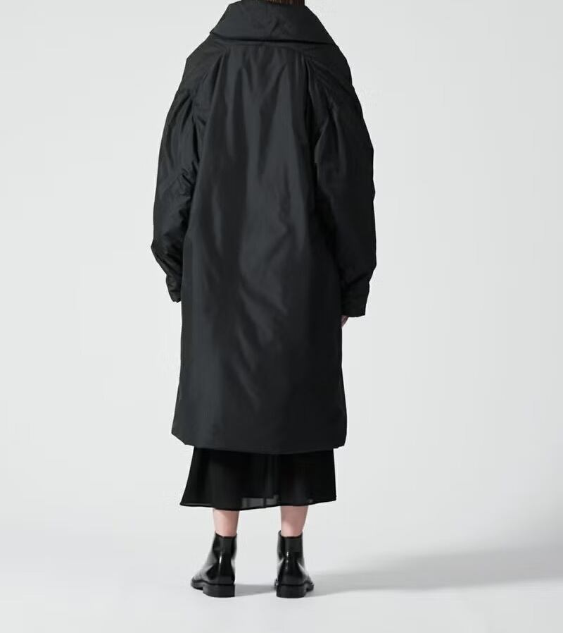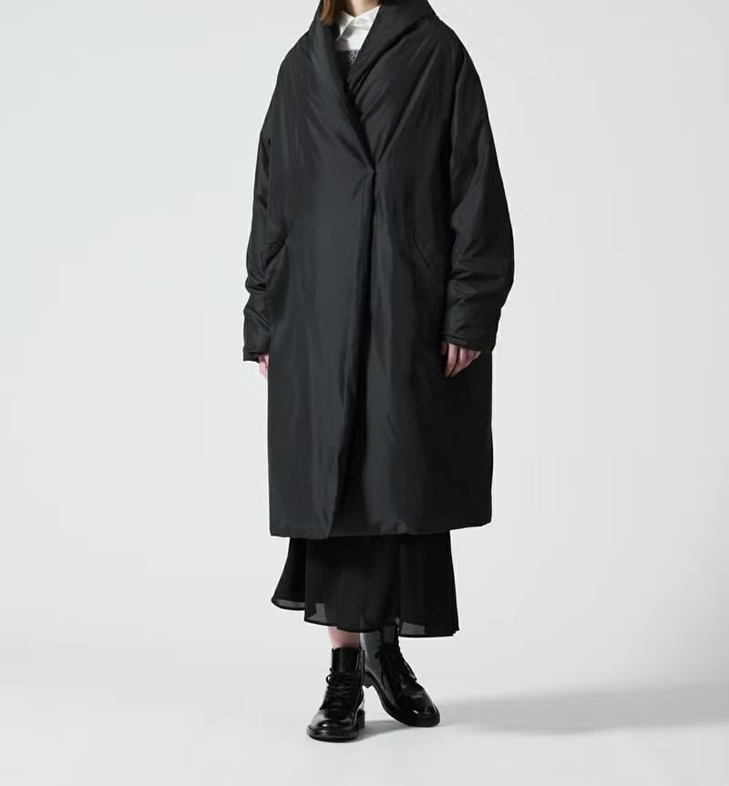 mizuiro indの定番となった人気のドレープライトダウンコートがアップグレードして再登場。ポケットがフロント仕様からサイドタイプに変わり、着膨れ感なくすっきり着用していただけるシルエットに仕上げました。マットなウォーム感のある光沢とタッチ、軽さと暖かさを兼ね備えたシックな雰囲気が印象的で、色々なコーディネートによく合う1枚。スナップボタンなので悴んだ指先でも留めやすい仕様になっています。マフラー無しでも首元を暖かく覆ってくれるかっこいいデザインが特徴。寒い冬の季節に暖かく身を包んでくれるmizuiro indおすすめの1枚です。今季はシックなチャコールグレーとブラックの2色展開です。