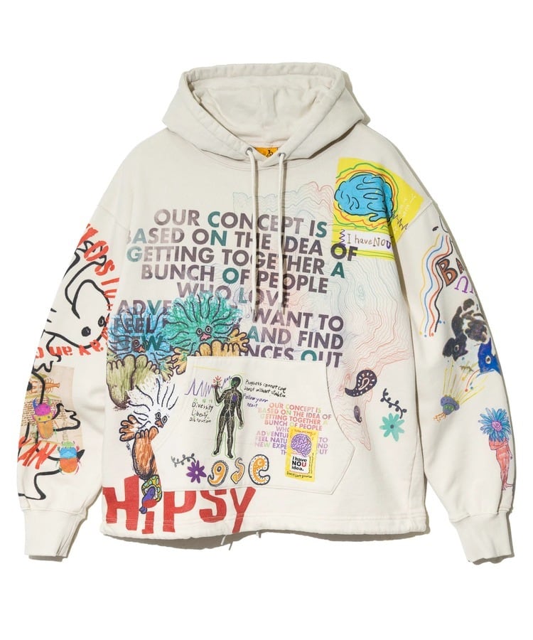 ユーモアとアートをミックスした、go slow caravanらしさ全開のフーディーです。
