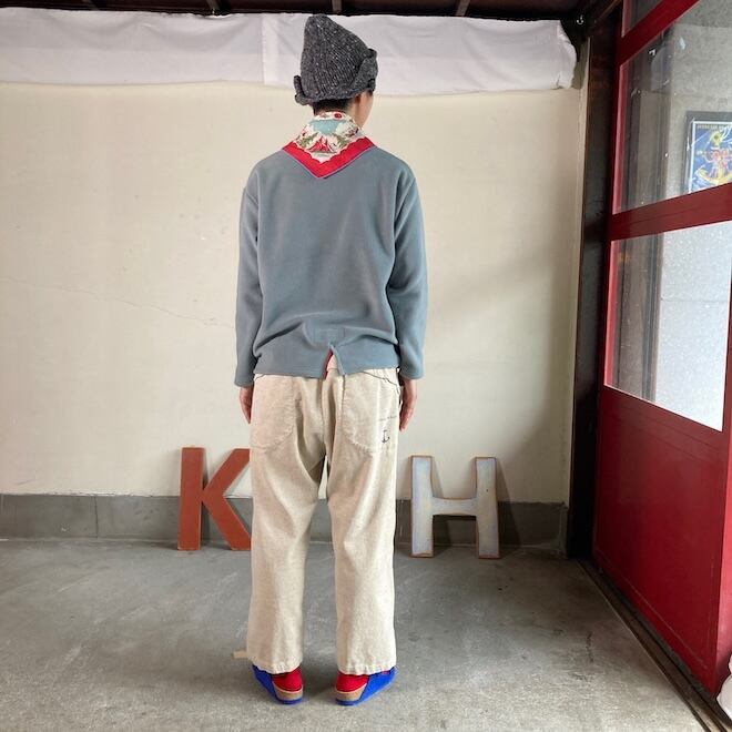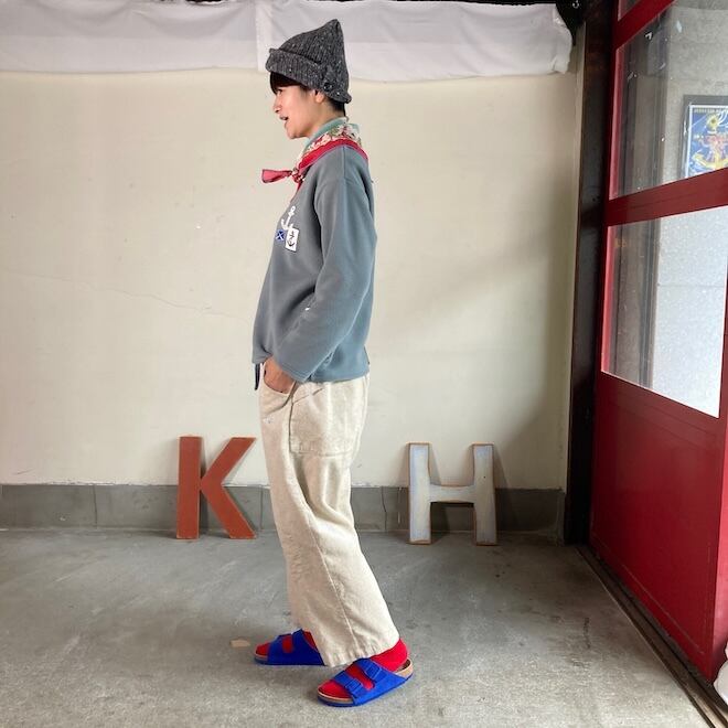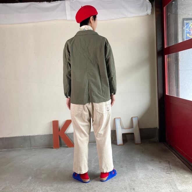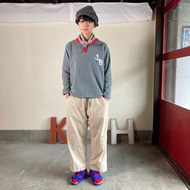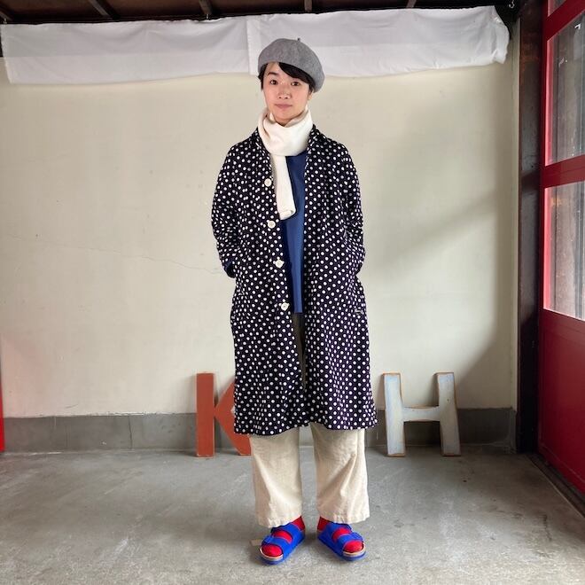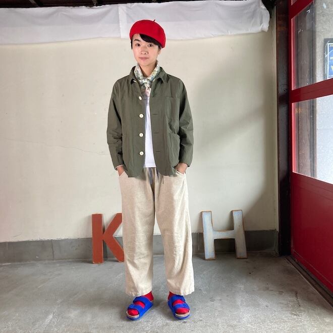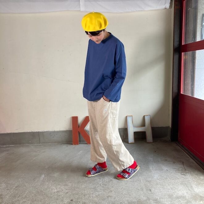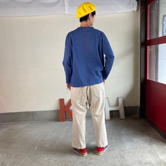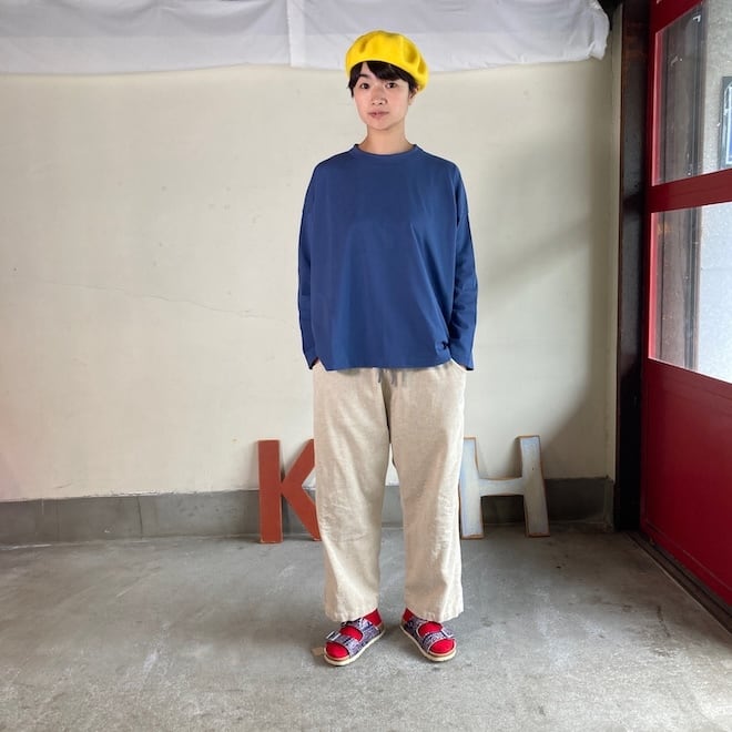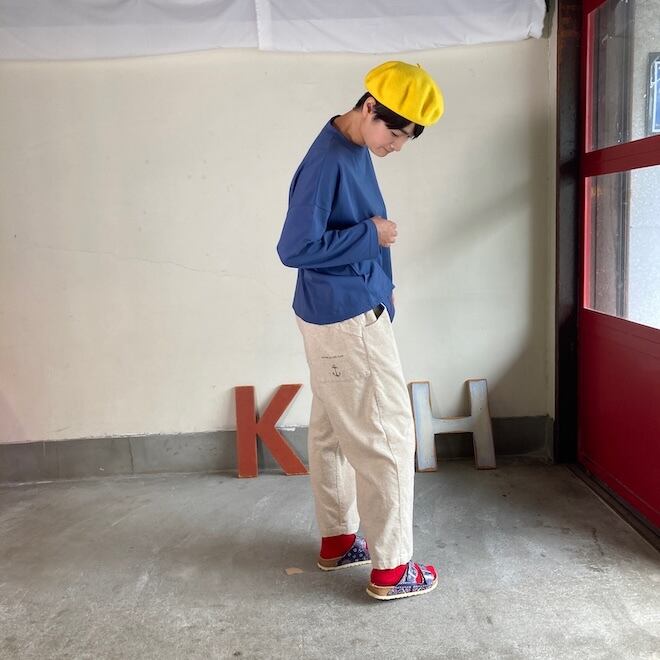 こちらのカタチ、トラベラーズパンツはいくつかの生地で挑戦して好評でした。あまり着丈が長くないトップスを合わせて特徴のあるポケットを魅せて履きたいですよね。実店舗のお客様はぜひ、膝の部分にも注目してみてほしいです。見えないところにかわいい工夫があり、快晴堂らしい細やかな仕掛けが気分を明るくしてくれるのではないでしょうか!
