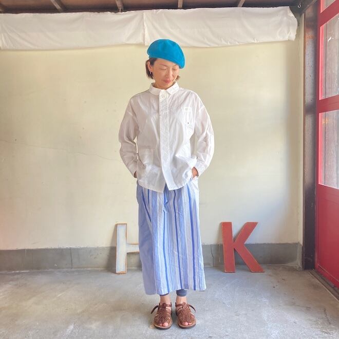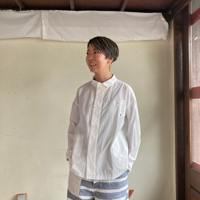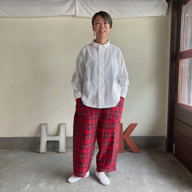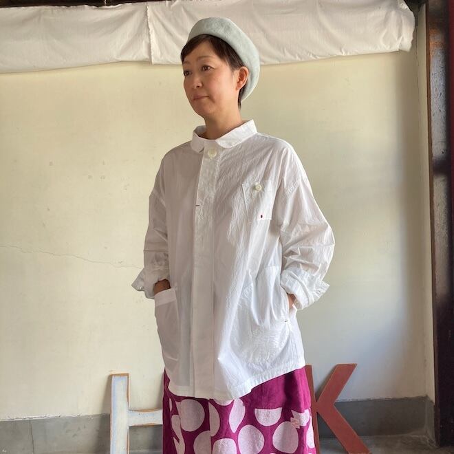 全体にゆったりとした着こなしが好きな方におすすめではありますが、ゆったりしてるのにすっきりと着こなせる、そういった不思議な魅力があるブランドです。ぜひ作品を通じてその魅力を共有していただきたいです。