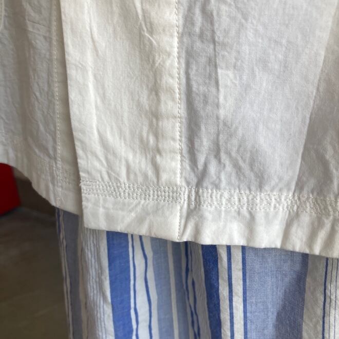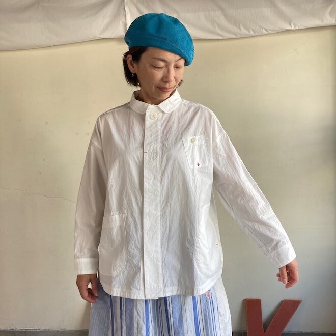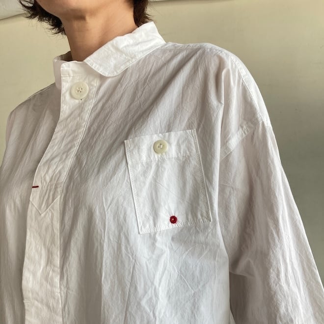 通常よりたくさんの手間と時間をかけて練り込んだ究極のナチュラル加工の生地はシワが消えにくい耐久性があります。自然なシワと風合いのある生地に、ステッチを効かせて立体感のあるきれいなシルエットのふわりとした軽やかなシャツです。