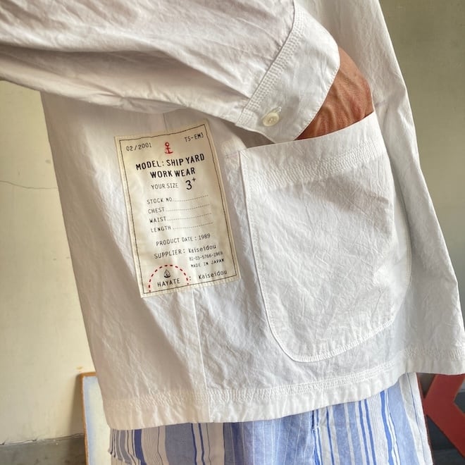快晴堂らしく、左右のポケットのカタチが違っていたり、サイド部分のパッチネームが施されていたりと個性的なディテールが目を引きます。