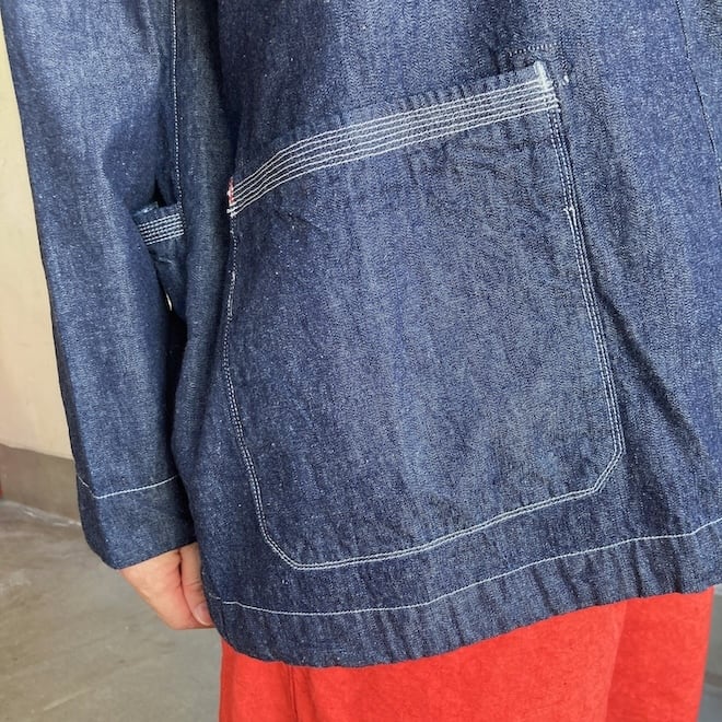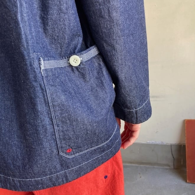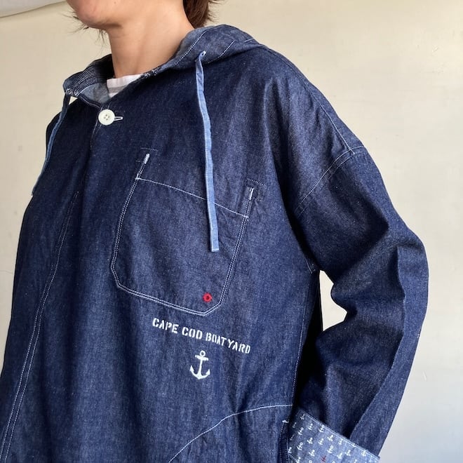 アメリカ、ニューヨーク州南東部の大西洋に浮かぶ島、ロングアイランド。島の突端には架空の小さな造船所、『CAPE COD BOAT YARD』があります。略して『CCBY』。生地は『日本綿布』による6オンスデニム。力織機で織り上げたインディゴデニムは快晴堂の定番生地です。伝統的な織機で織り上げたデニムは、ふっくらとした風合いで軽やかな生地なので、ステッチを効かせて立体感のあるきれいなシルエットとカジュアルさのバランスが良いシャツとなっております。