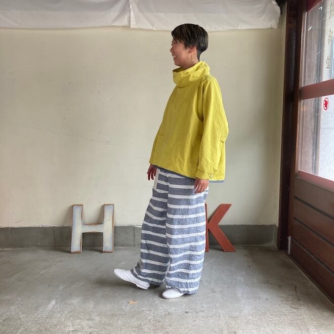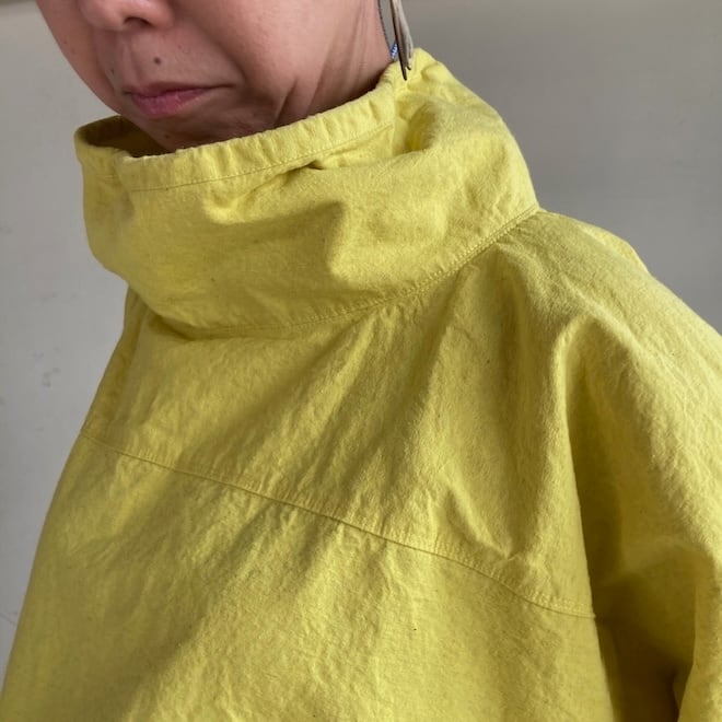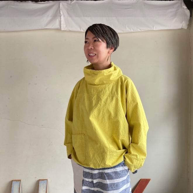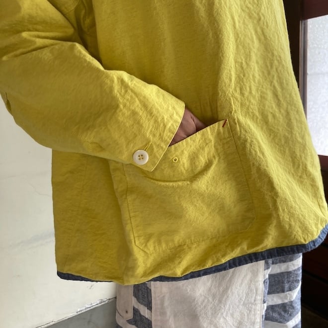 一枚着るだけでかわいい雰囲気になる作品です。インパクトのあるカラーをセレクトするにあたり、こちらのすっきりとした着丈のバランスが良いのではと思いました。春の訪れを告げるにふさわしい作品ですし、個性的な着こなしが好きな方には通年でおすすめできる素敵な作品だと感じます。