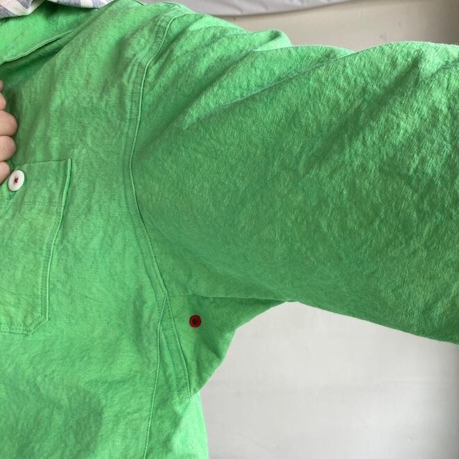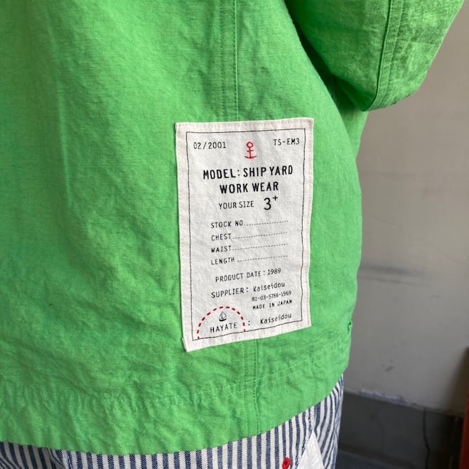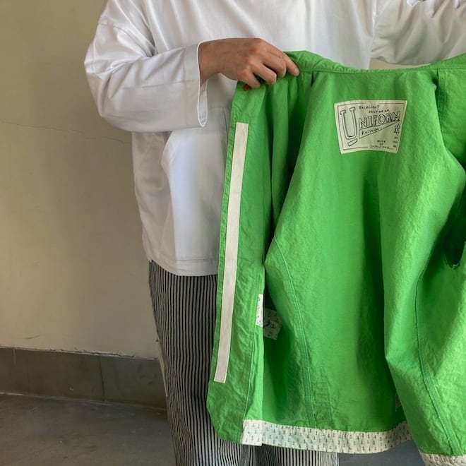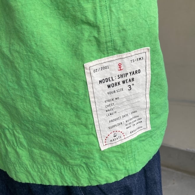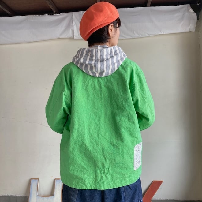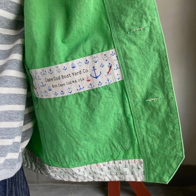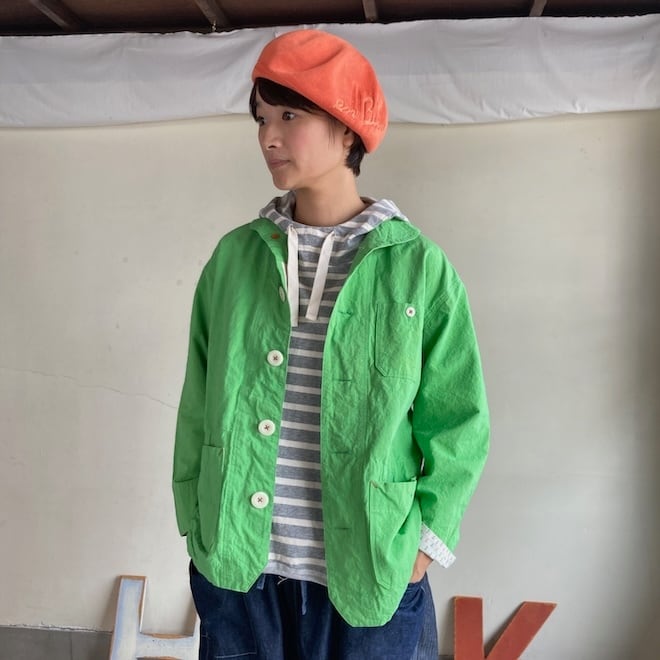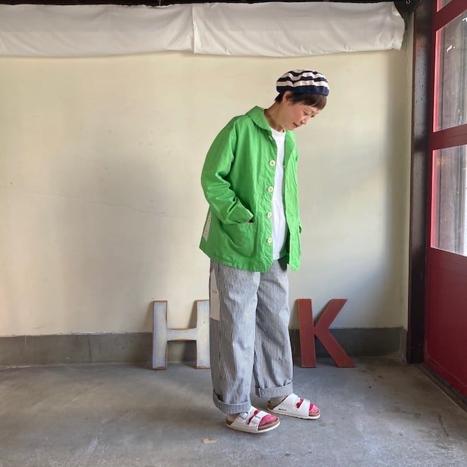 こんなかわいい色味、生地のジャケットはあまり見たことがなく、素敵でしたのでセレクトいたしました。当店の馴染みのお客様や、快晴堂のファンの方でしたら、この気持ちを共感していただけるのではないでしょうか。春の訪れを告げるにふさわしい明るめのカラーに加えて、フレンチワークテイストのラピスラズリもオーダーしております。前が開くことで春先のちょっとした羽織物として活躍しそうですし、中に合わせる服によって様々な表情を楽しめます。