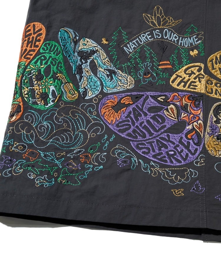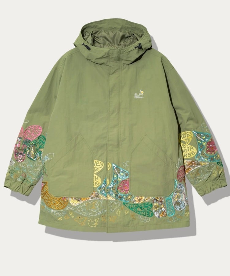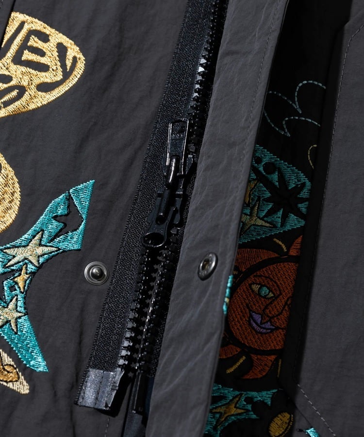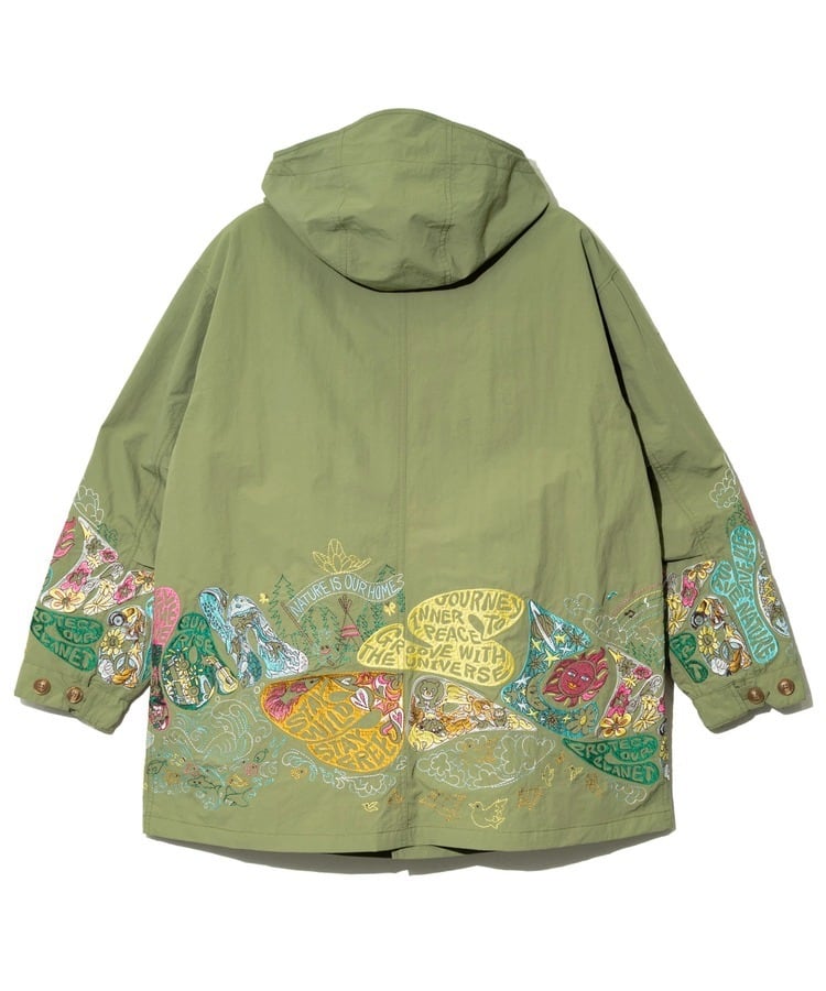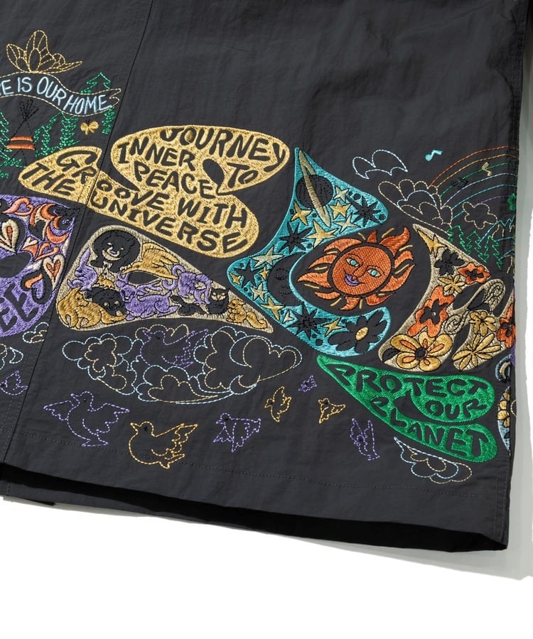 袖や裾まわりには「自由と平和、愛、波打つようなリズム」を表現した〝グルーヴィ〟なヒッピーロゴを刺繍で表現。羽織るだけでgo slow caravanの世界観を存分に楽しめます。