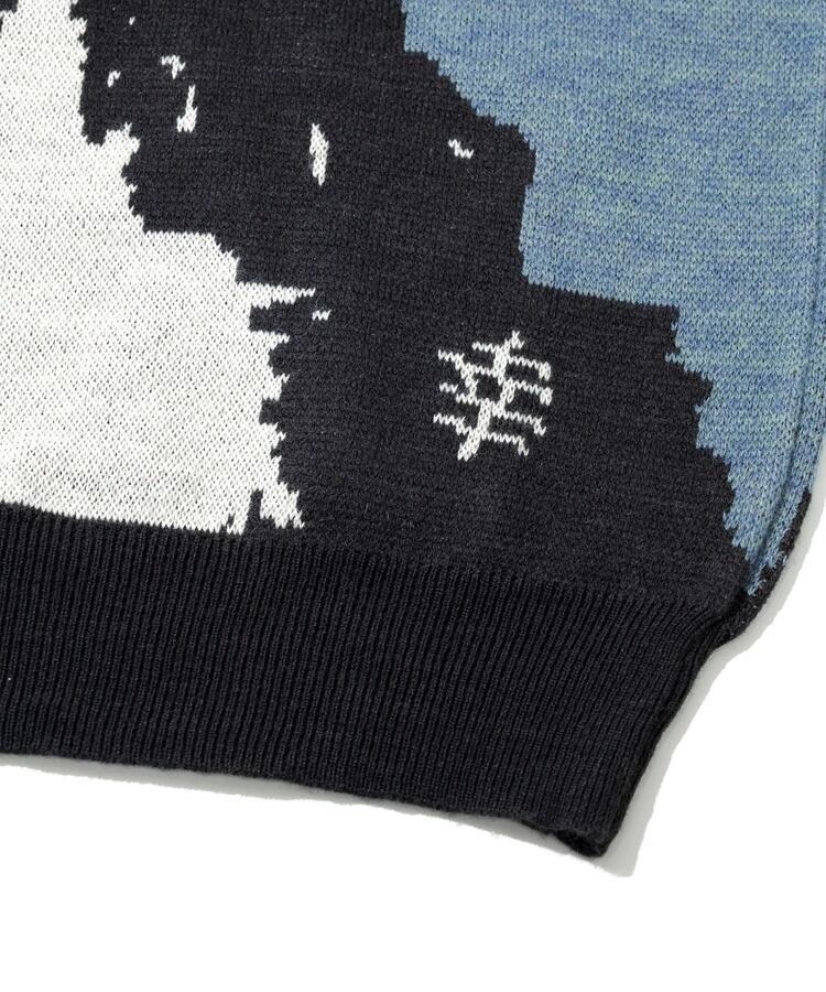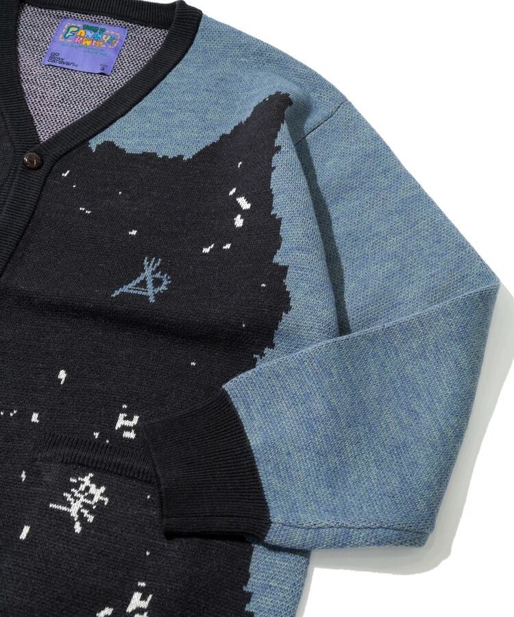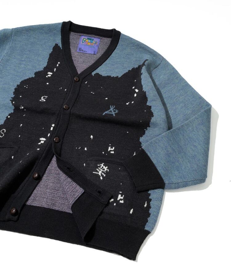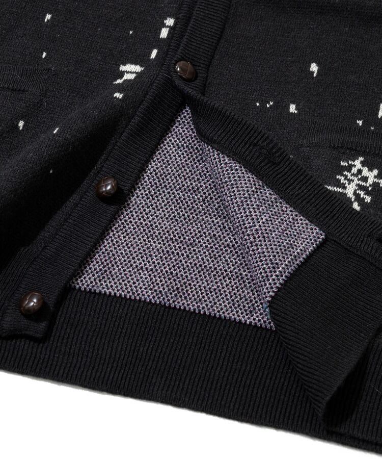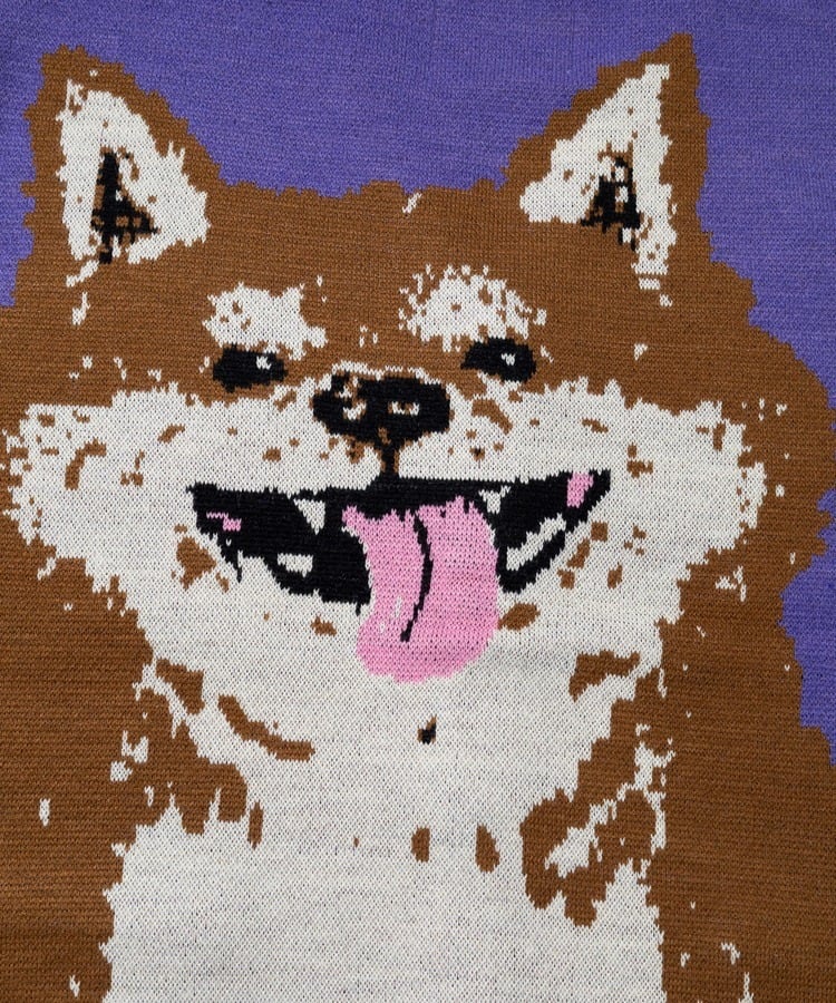 前身には後ろ姿の柴犬、後身に笑顔の柴犬をダブルジャガードで表現。背後の人に癒しと幸せをもたらすことができる中肉厚ニットカーディガン。プリントでは表現できない温もりある柄の雰囲気も魅力。茶柴と黒柴の展開。