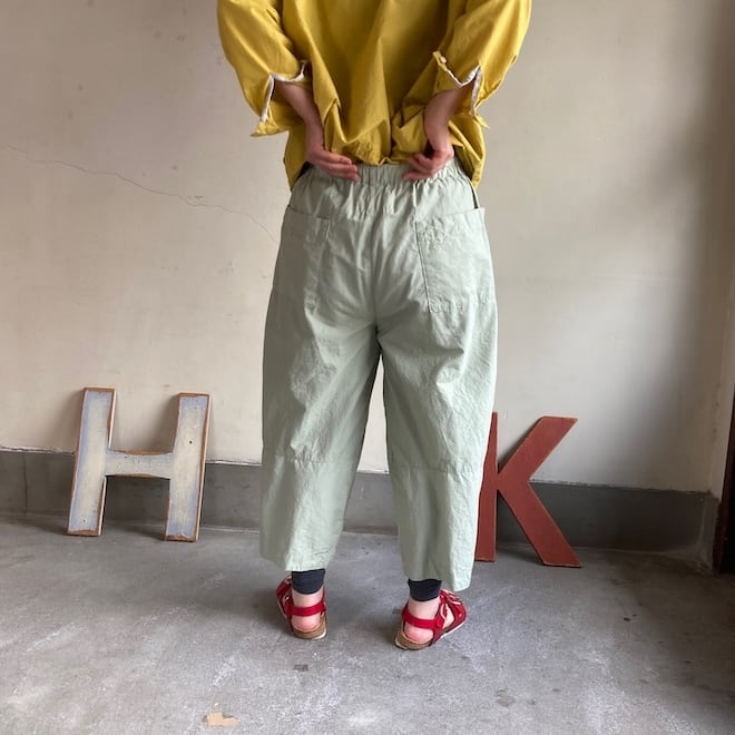 当店の好みにはなりますが・・こういった軽やかで表情のある、かつ適度なハリもある生地はコロンパンツとの相性が良いので必ずオーダーいたします。夏場のリラックス感があるパンツとしておすすめしたい名品です。ナチュラルになりすぎないというのがポイントでしょうか。