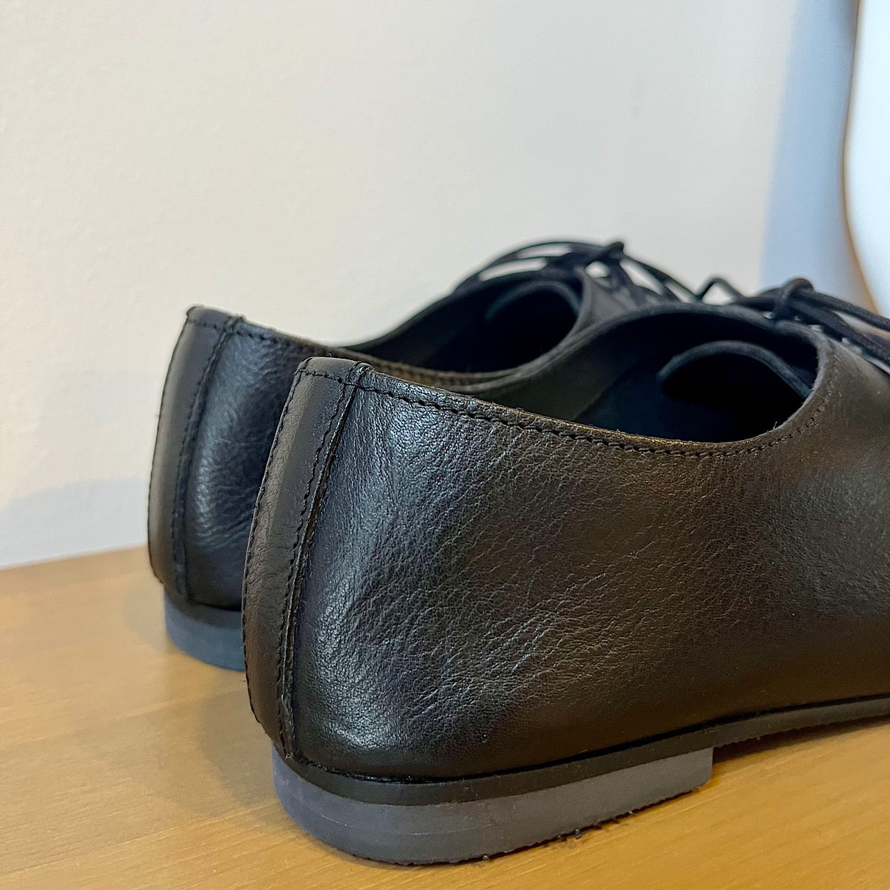 シンプルで洗練されたデザインが特徴のレースアップレザーシューズです。バレエシューズのような軽やかさと、革靴のきちんと感を兼ね備えたモデルです。