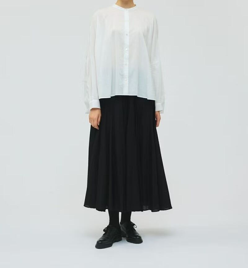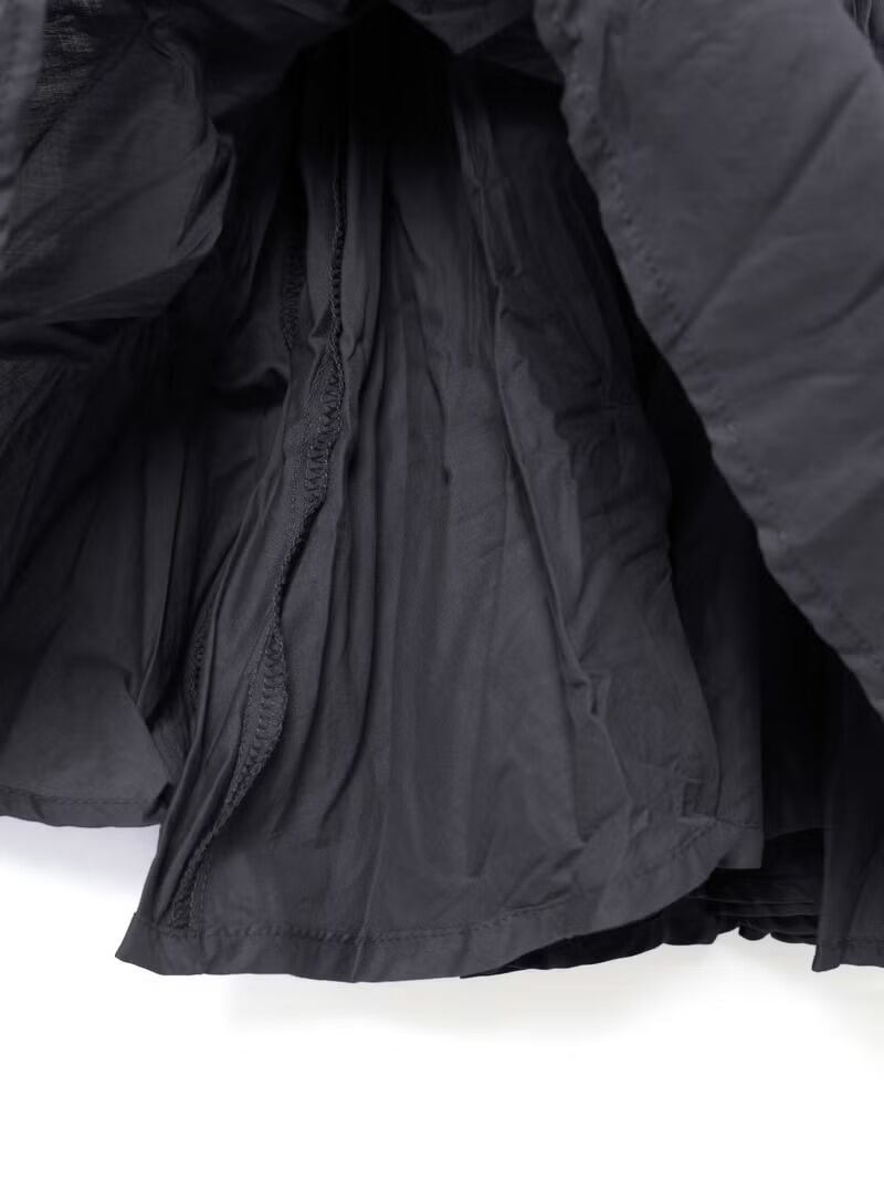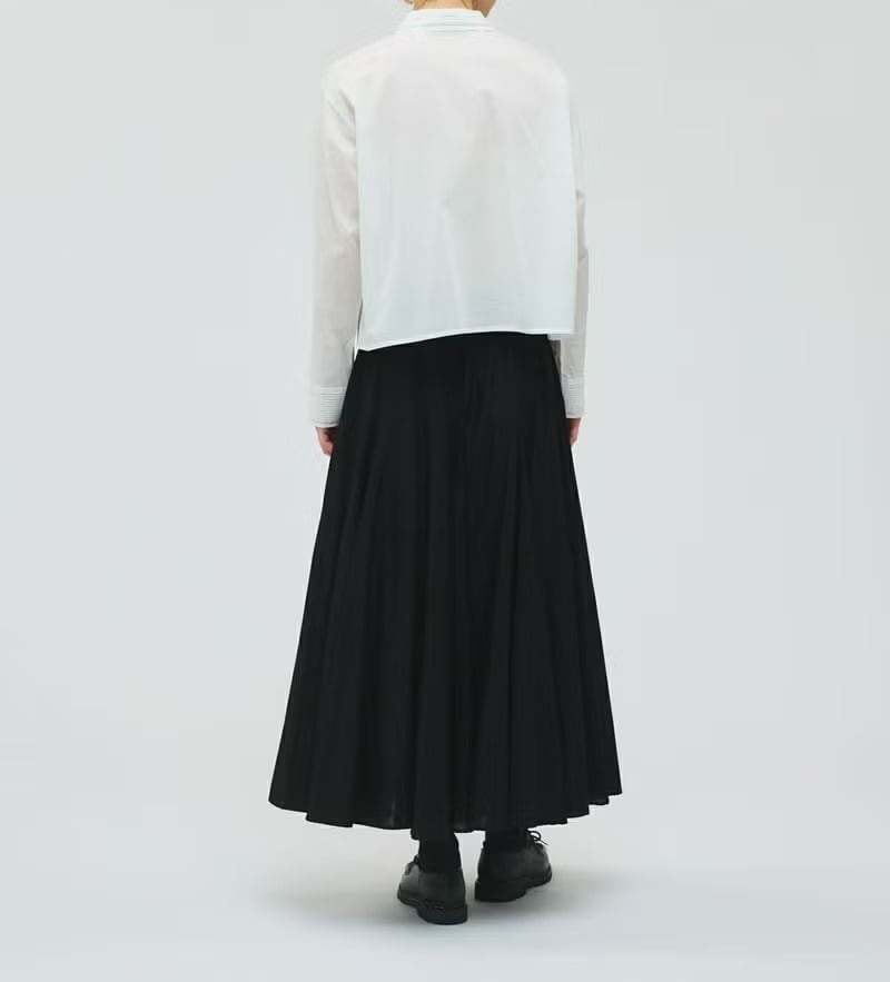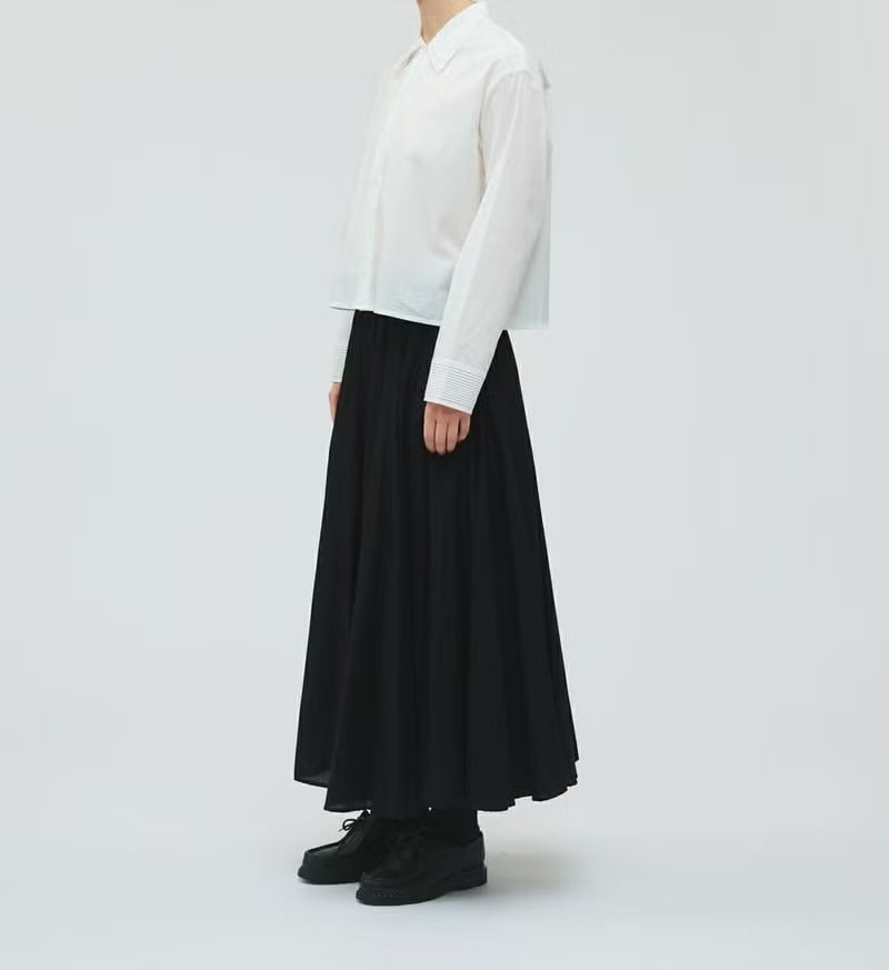 mizuiro ind人気の1枚が今春、スモークピンク、ライトグレー、ダークグレーの新色を追加し新登場。コットンローンを使用したボリュームフレアスカートです。裾にかけボリューム感があり女性らしいフレアラインが魅力の1枚。シワを全体に施した雰囲気のあるデザインで入荷の際はあえてねじり巻いた状態になっているほど。お洗濯後もねじって収納してOK。同色の裏地が付いているので透け感も気にせず穿いていただけます。フレアなシルエットでコットン素材なのでオールシーズン活躍できるのもポイントです。