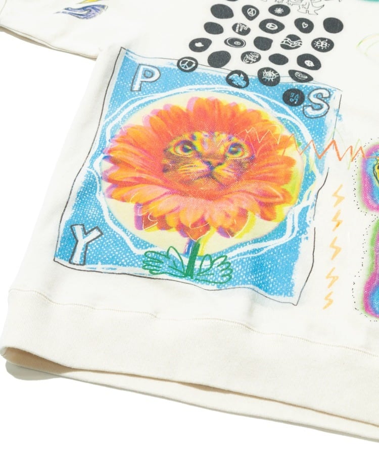 中でも、人気の総柄である「サイケ柄」「宇宙柄」はブランドのアイコンとも言えるかわいい柄で、その他にも人気の「クマ」や「猫」のアニマルプリントシリーズはブランドの枠を超えて大手アパレルメーカーさんやテレビ番組や他業界の企業とコラボしたり、シーズンごとに誰もが知っている有名な車やキャラクター、アニメなど様々なカルチャーとのコラボ作品も手掛けています。例えば、2023年スプリングサマーでは2022年に引き続き日本を代表する車のブランドである「日産」とコラボしました。名車スカイライン「ハコスカ」「ケンメリ」や「R32 GT-R」のは代表的なデザインになります。また、過去には「キン肉マン」「ウルトラマン」「ストリートファイターⅡ」「ムーミン」「セサミストリート エルモ」「ポケモン ピカチュウ」「グレムリン ギズモ」などを手掛けており、それぞれの発売時にはとても盛り上がった記憶があります。