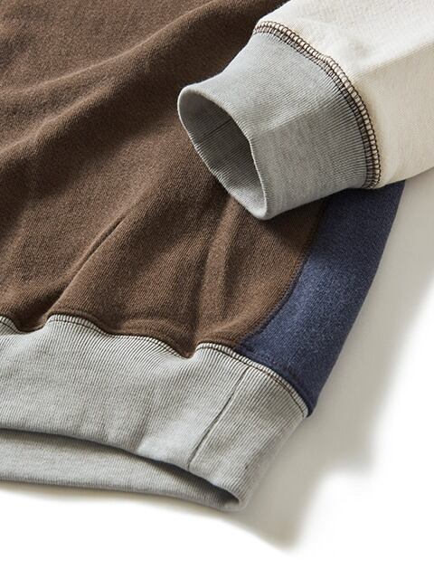 当店でもとても人気が高く、生地の良さや着心地の良さを理由にリピーターになってくれるお客様が最も多いブランドです。店頭での販売においても、その品質と信頼の高さゆえに安心しておすすめできる作品ばかりです。また、ピグメント加工による風合いの良さやカラーバリエーションの多さは他社にはない魅力と言えます。