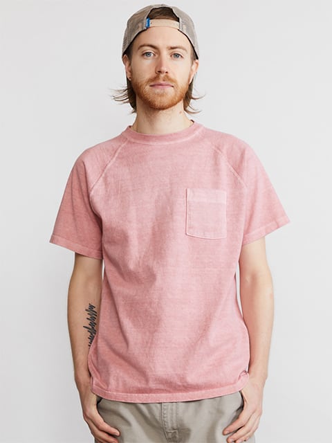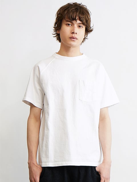 着応えのあるヘビーオンスジャージーのポケット付きラグランTシャツ。