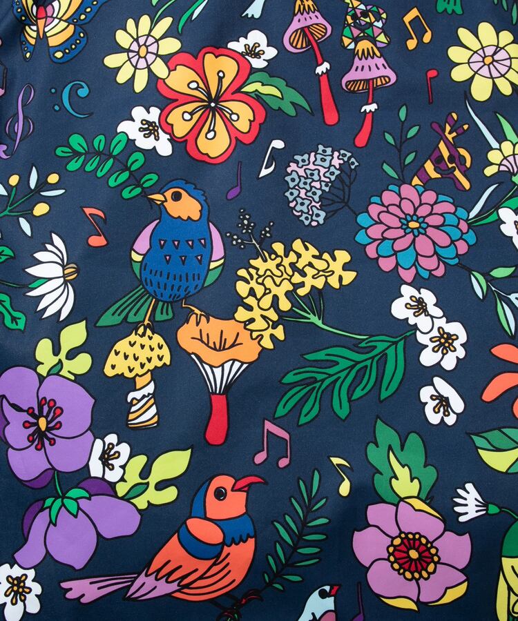 中でも、人気の総柄である「サイケ柄」「宇宙柄」はブランドのアイコンとも言えるかわいい柄で、その他にも人気の「クマ」や「猫」のアニマルプリントシリーズはブランドの枠を超えて大手アパレルメーカーさんやテレビ番組や他業界の企業とコラボしたり、シーズンごとに誰もが知っている有名な車やキャラクター、アニメなど様々なカルチャーとのコラボ作品も手掛けています。例えば、2023年スプリングサマーでは2022年に引き続き日本を代表する車のブランドである「日産」とコラボしました。名車スカイライン「ハコスカ」「ケンメリ」や「R32 GT-R」のは代表的なデザインになります。また、過去には「キン肉マン」「ウルトラマン」「ストリートファイターⅡ」「ムーミン」「セサミストリート エルモ」「ポケモン ピカチュウ」「グレムリン ギズモ」などを手掛けており、それぞれの発売時にはとても盛り上がった記憶があります。