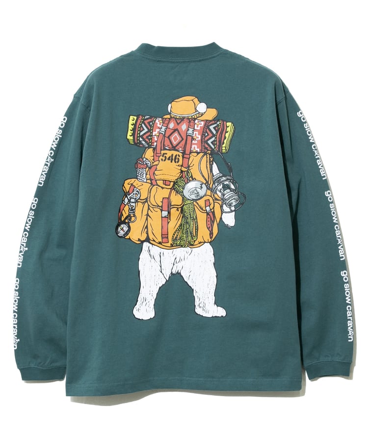 go slow caravan ゴースローキャラバン メンズ ロンt USA/C 野営クマSPロングスリーブTEE 全2色 メンズM-XL