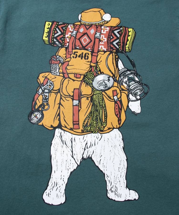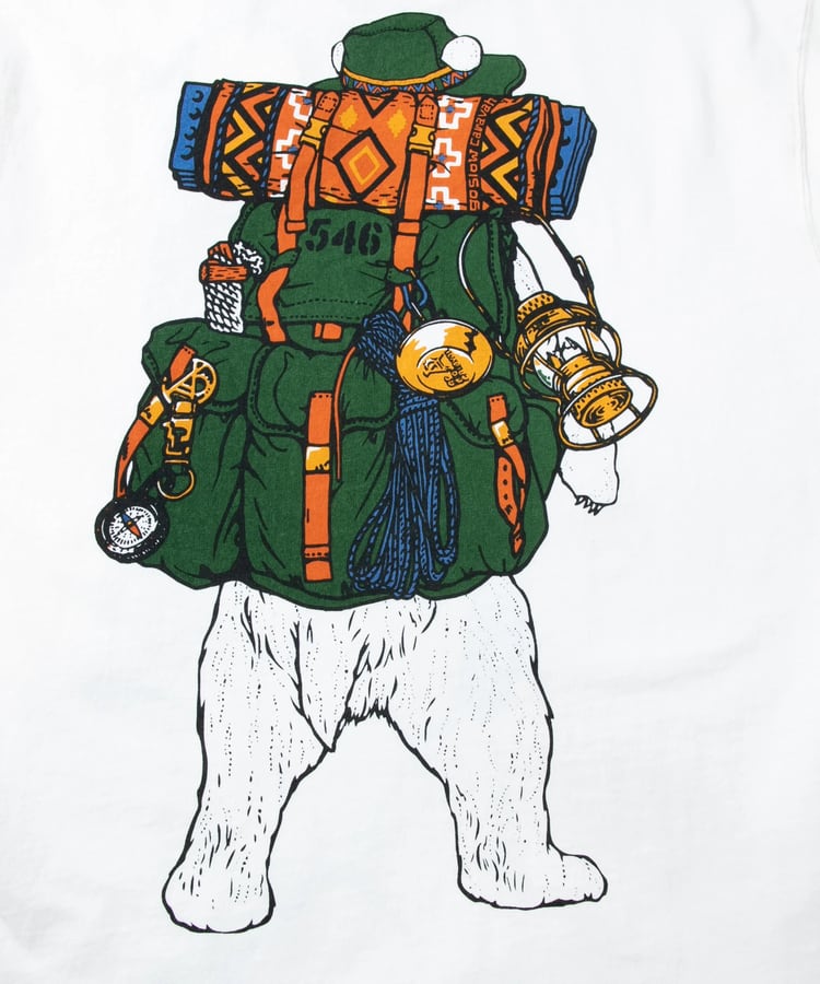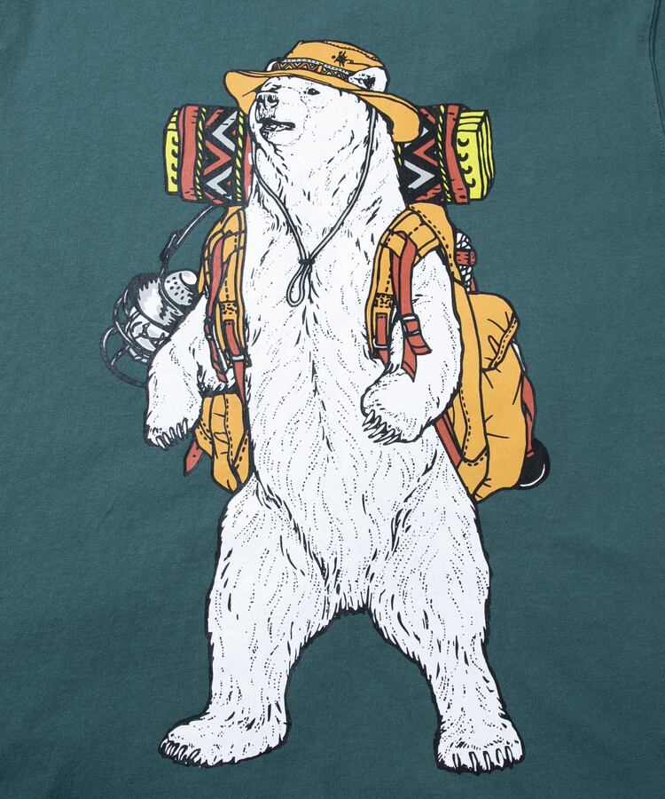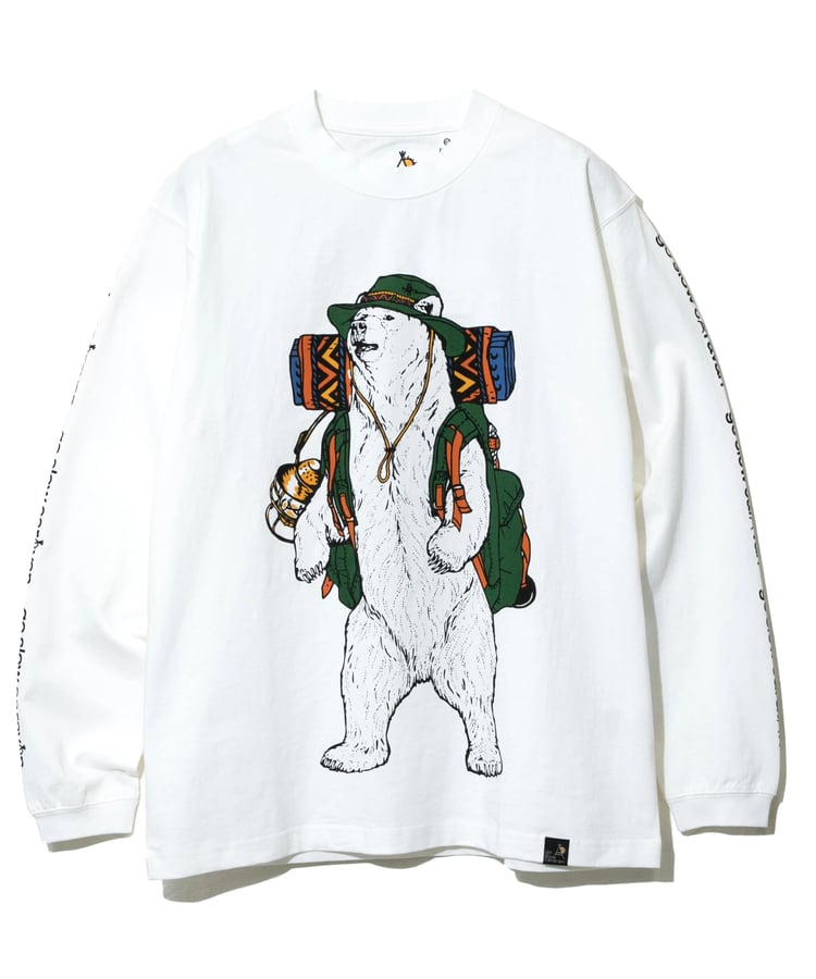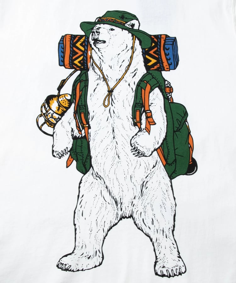 新作クマロンTEEは細かい部分まで描き込まれたイラストが魅力的な”野営クマ”。袖プリントに加え、クマの後ろ姿のプリントが入るスペシャルバージョンでお届けです!