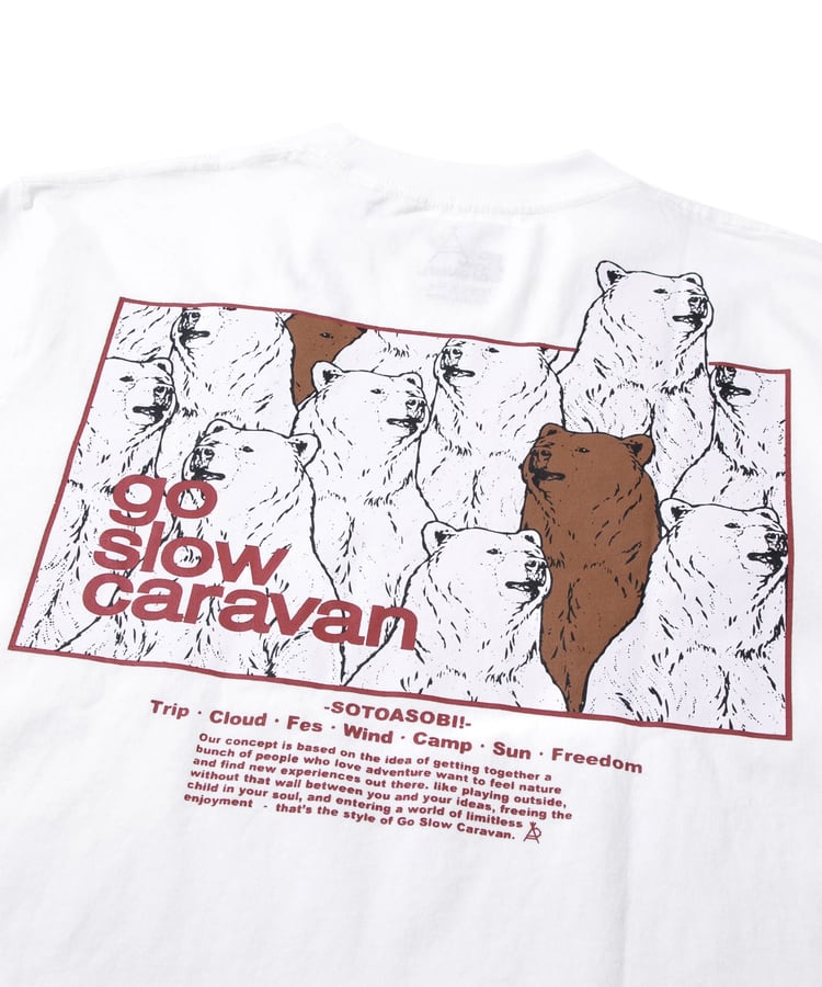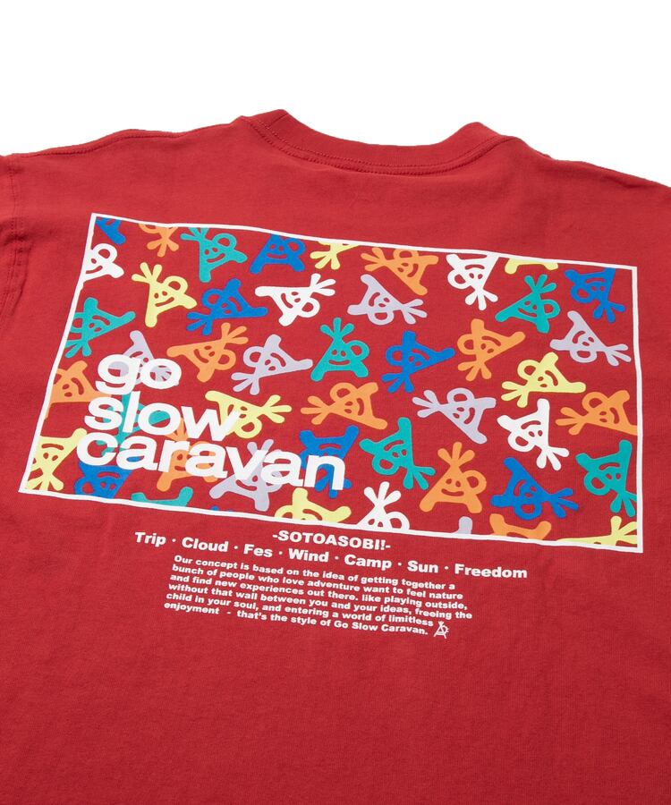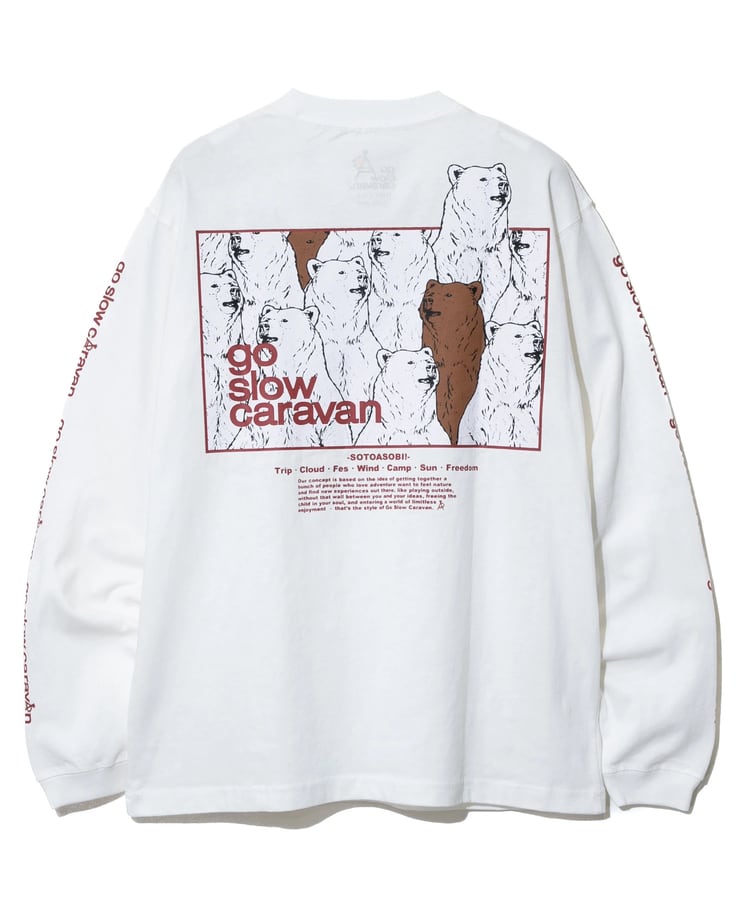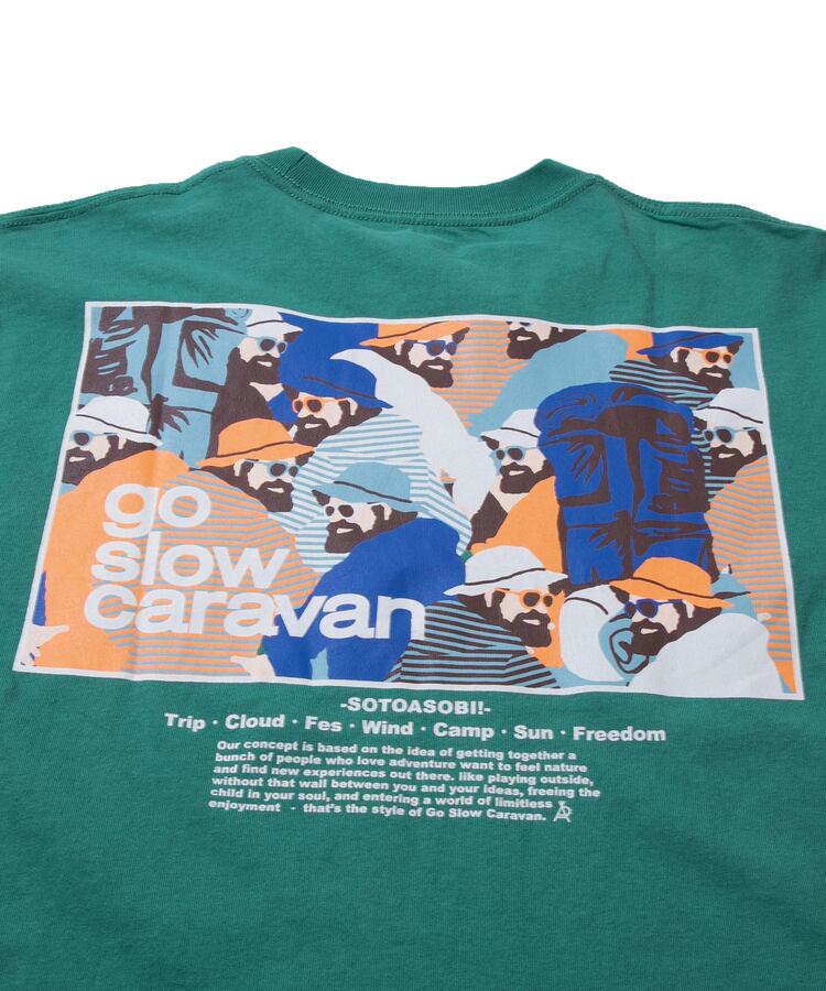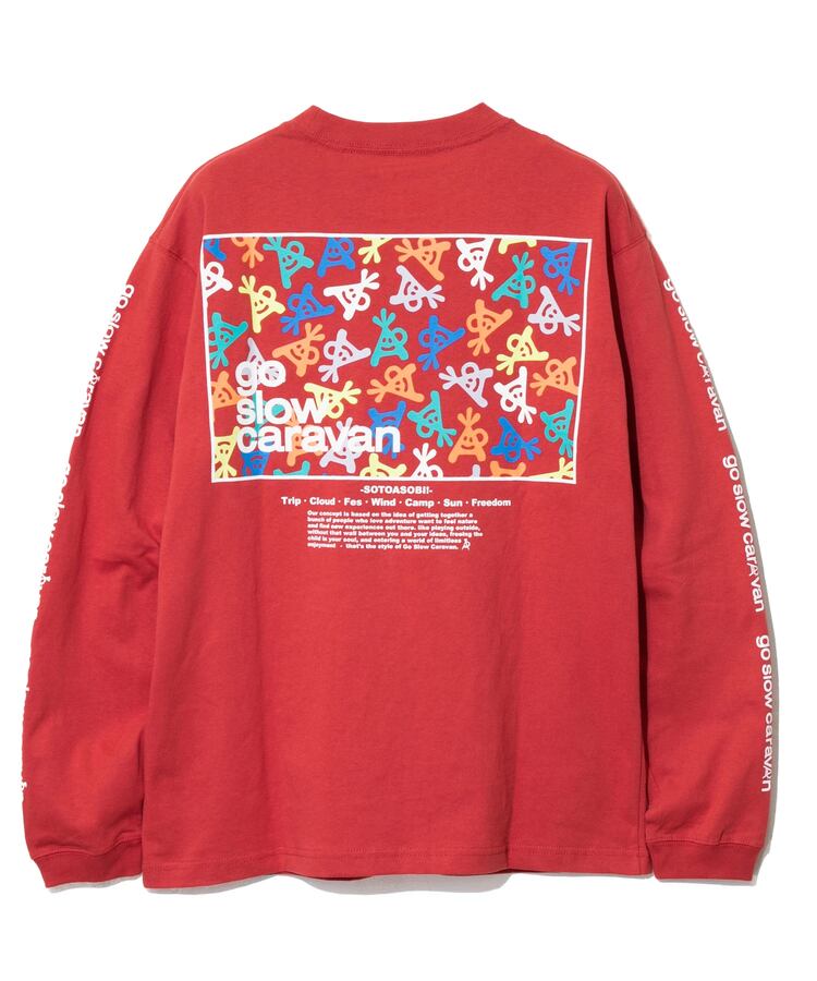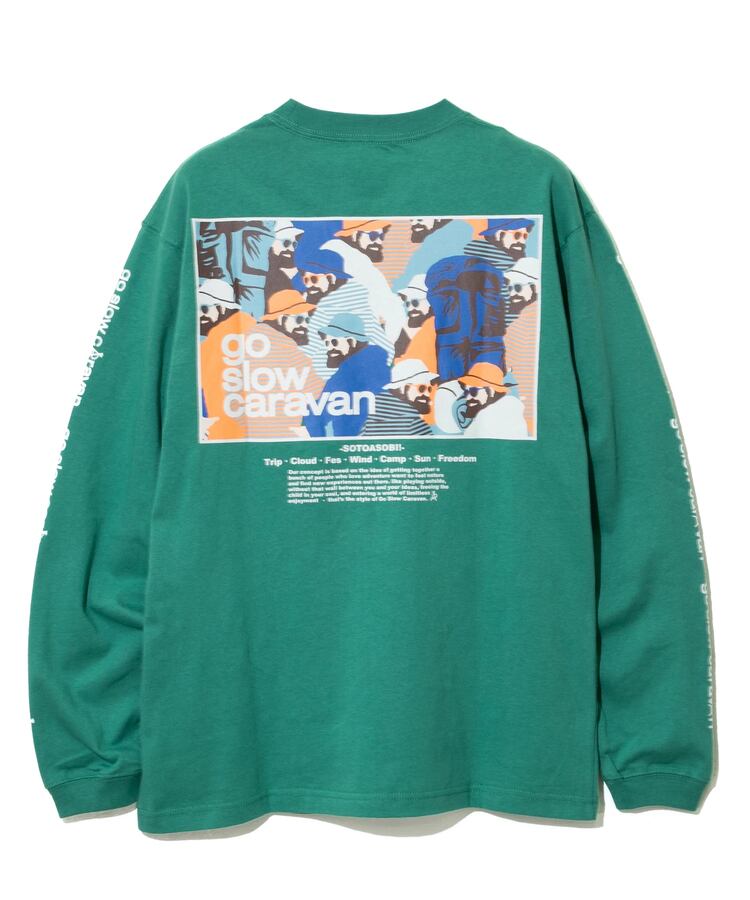 定番USAコットン天竺を使用したロングスリーブTEE。背中にはカラーごとに振り分けられたゴースローキャラバンのコンセプトがプリントされるLOGOシリーズ。袖にはgo slow caravanのラインプリントが入ります。