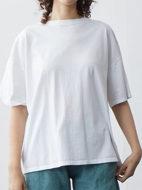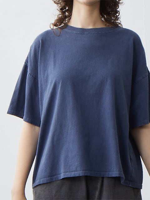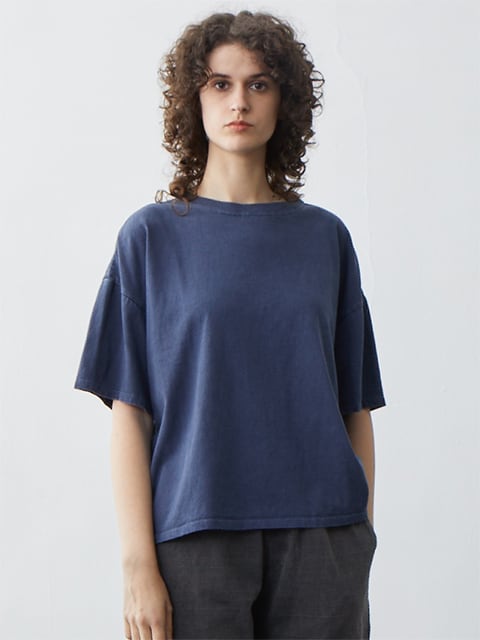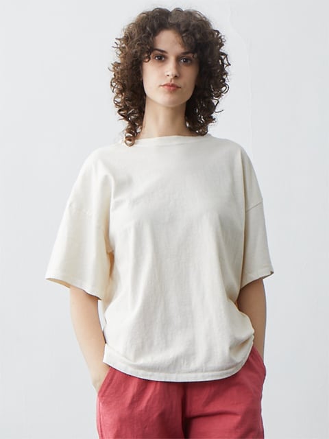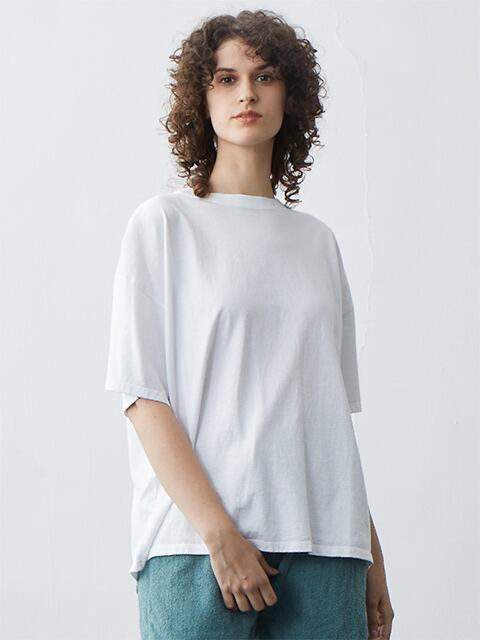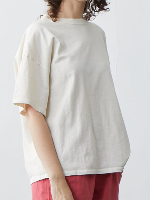 たっぷりとゆとりを持たせたワイドシルエットに、気軽に着回しやすい適度な着丈が心地良いウィメンズTシャツ。