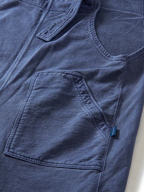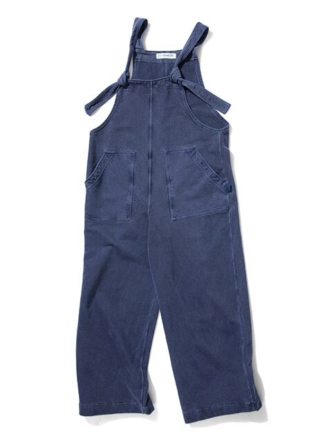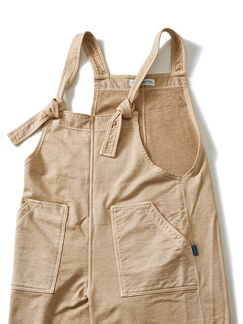 スウェットとTシャツの中間に当たる適度な厚みで、ソフトで清涼感のある肌触りが心地良いライトフレンチテリー製のサロペット。