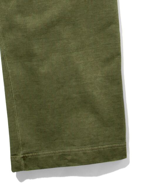 ※製品染め商品の特性上、染め上がりのお色やサイズに若干の個体差がございますので予めご了承ください。また、独特のユーズド感のある表情、多少のゆがみや擦れ、縫い目部分のしわ、生地の織り線等は製品の特徴です。 特有の不均一感やラフ感をお楽しみください。