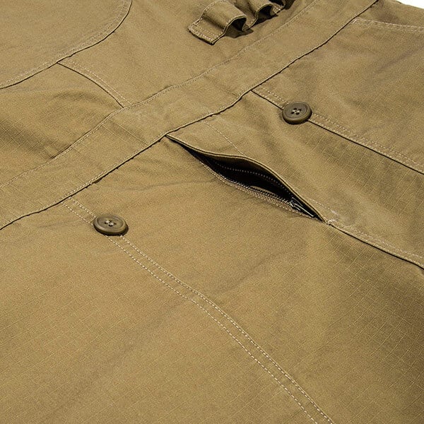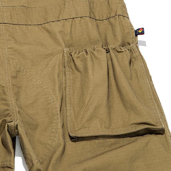 難燃糸から織り上げた難燃コットン(※)を使用した、2WAYオーバーオールです。フロントとバックをロールダウンすることで、オーバーオールがパンツに早変わり。ショルダーベルトは、フロント部分でベルトになります。ユニークで実用的なオーバーオールです。