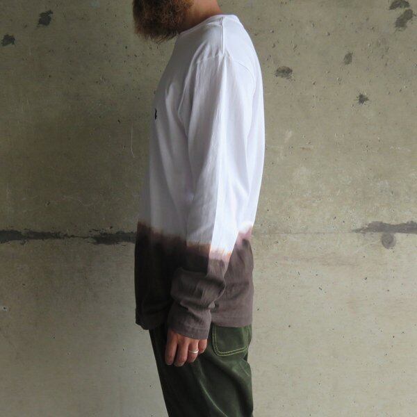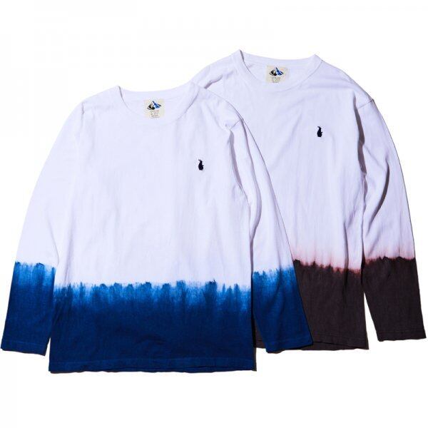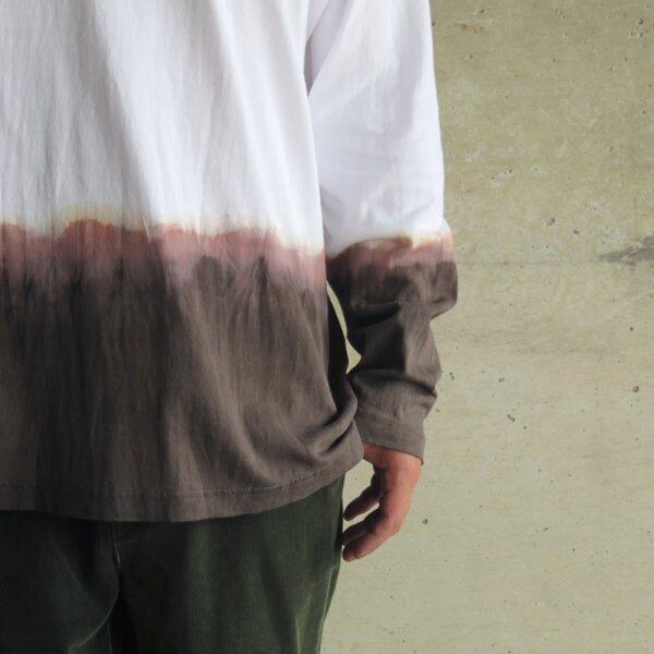 ホワイトのボディーの裾から泥染、藍染で染色を施し、シンプルな