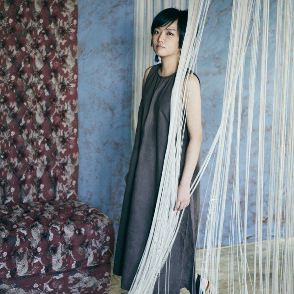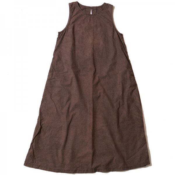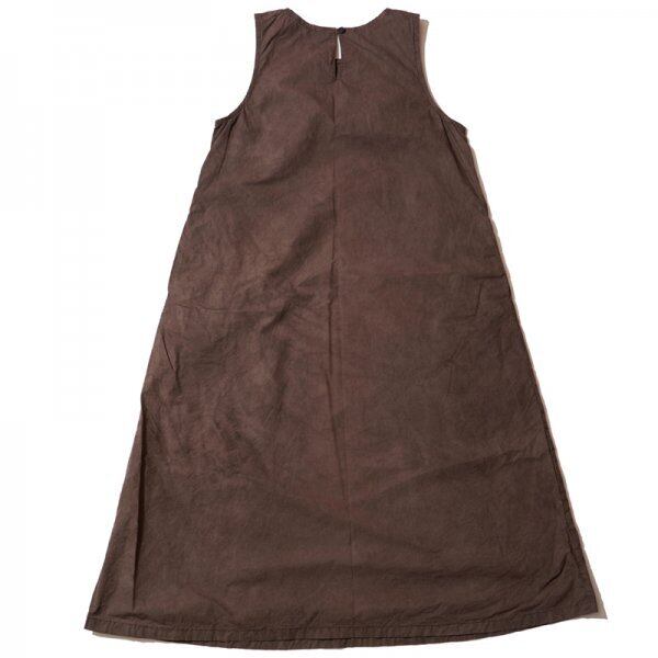 タイプライター素材を泥染めで染めを施したノースリーブワンピース。