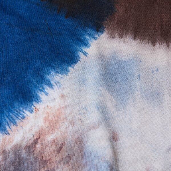 奄美大島伝統工芸「泥染」「藍染」をランダムに混ざり合うようデザイン。