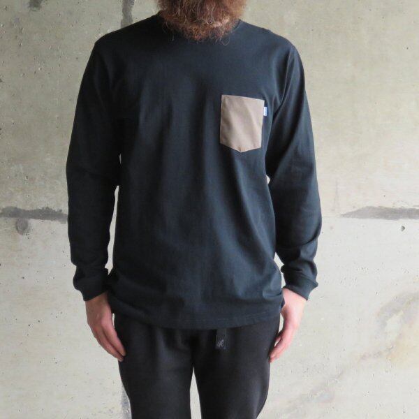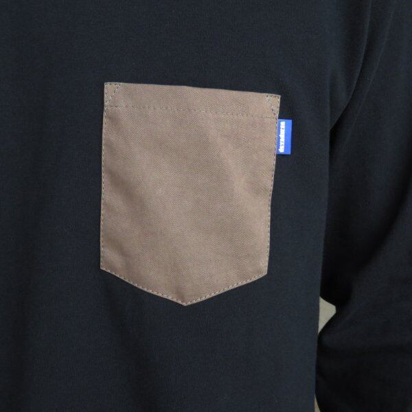 生地を先に泥染、藍染で染色し、ポケットとして採用したロングTシャツ。